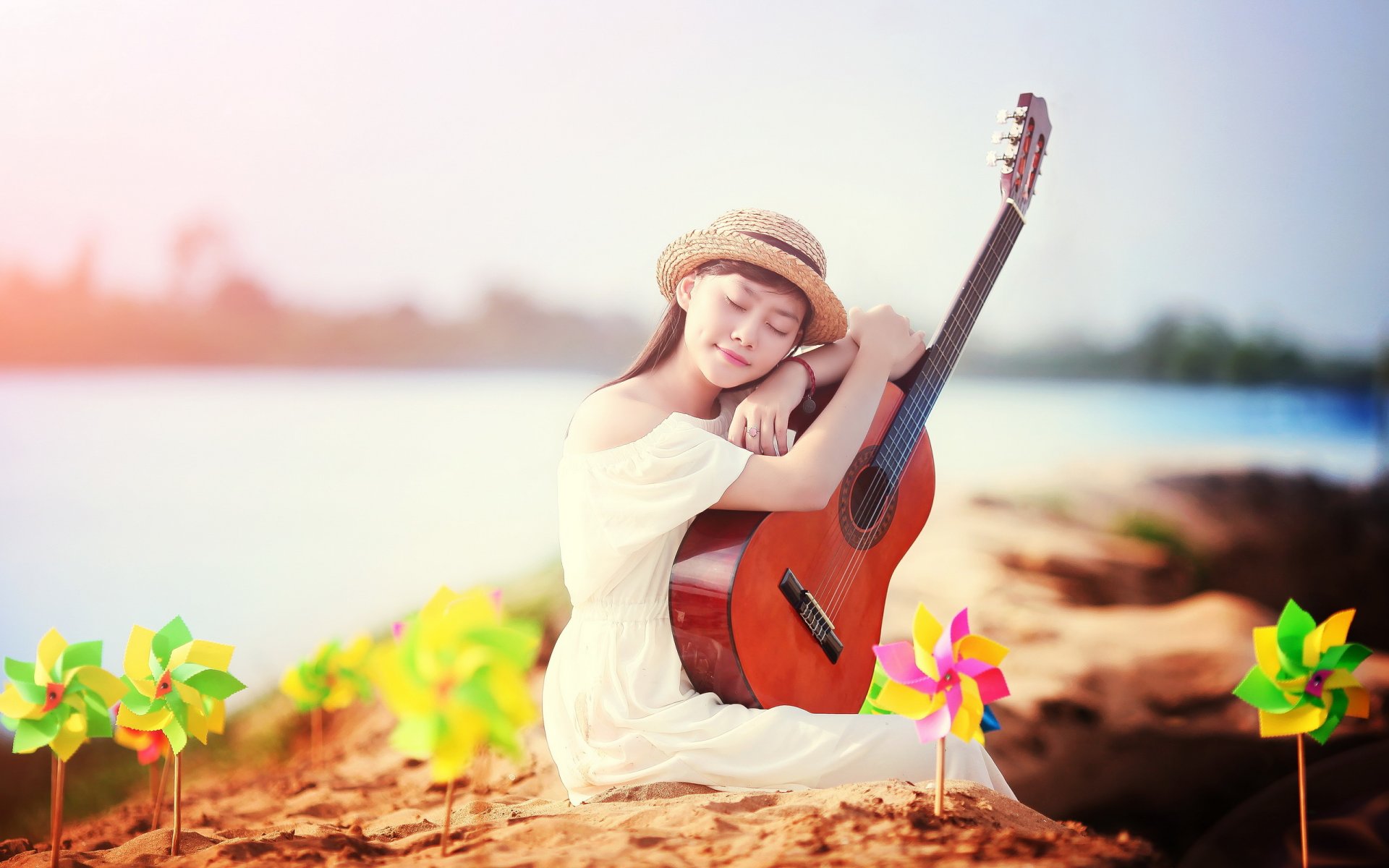 Été dans le domaine de la jeune fille joue de la guitare pour mamanÉté dans le domaine de la jeune fille joue de la guitare pour maman