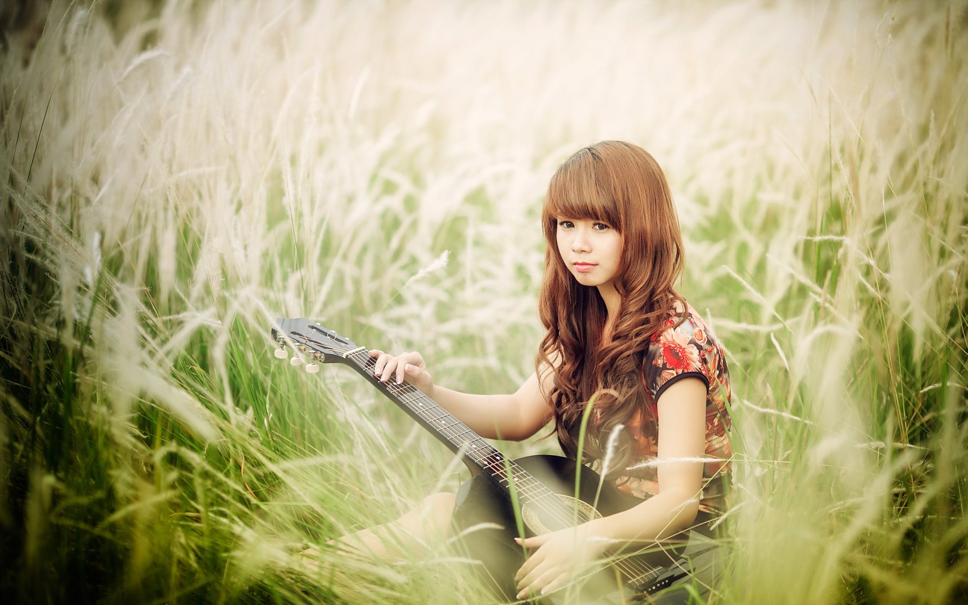 Kellan Lutz avec une guitare à la cabane et une fille brune
