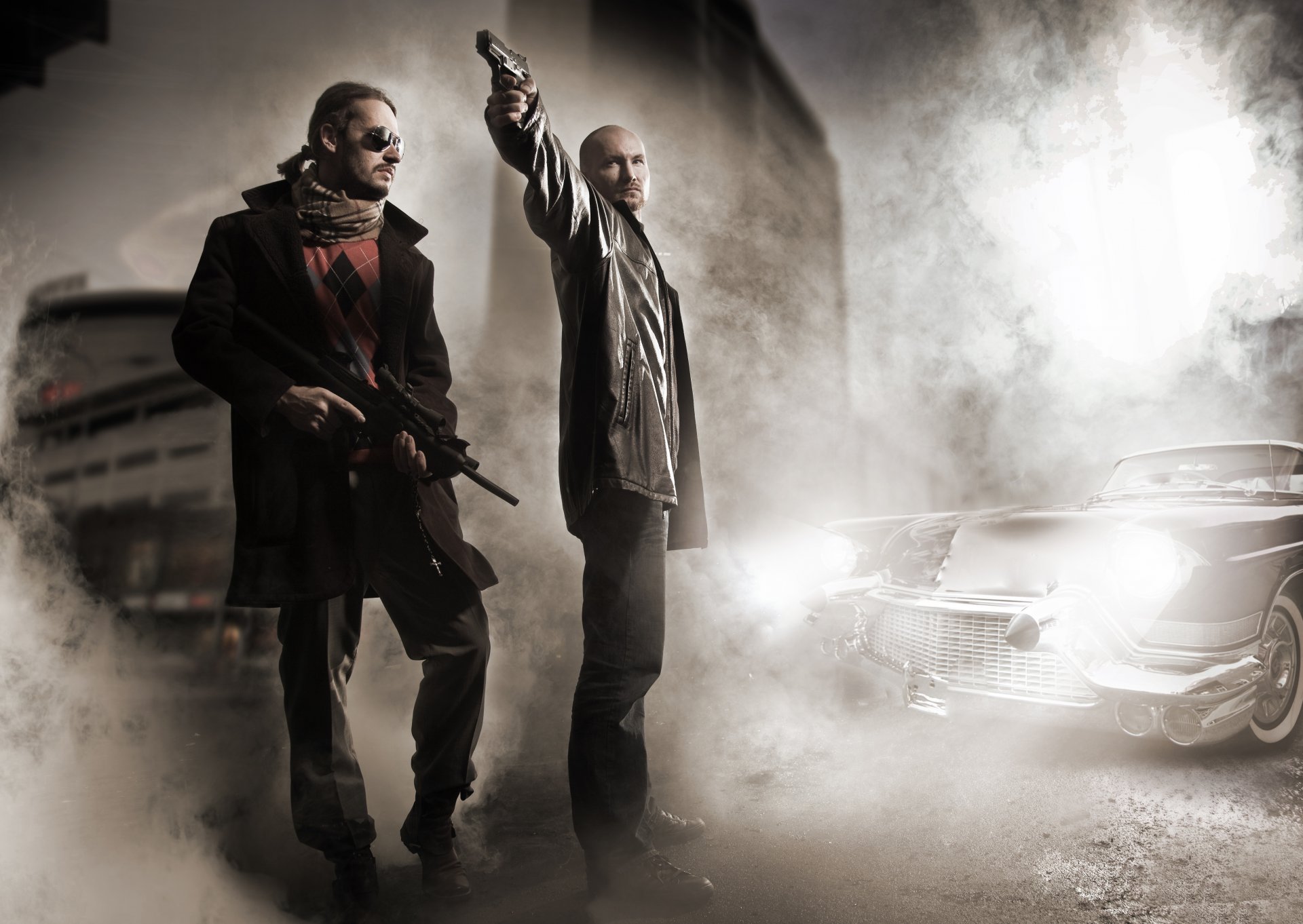 Bagarre d'hommes avec winchester et poêle dans la cuisineBagarre d'hommes avec Winchester et poêle dans la cuisine