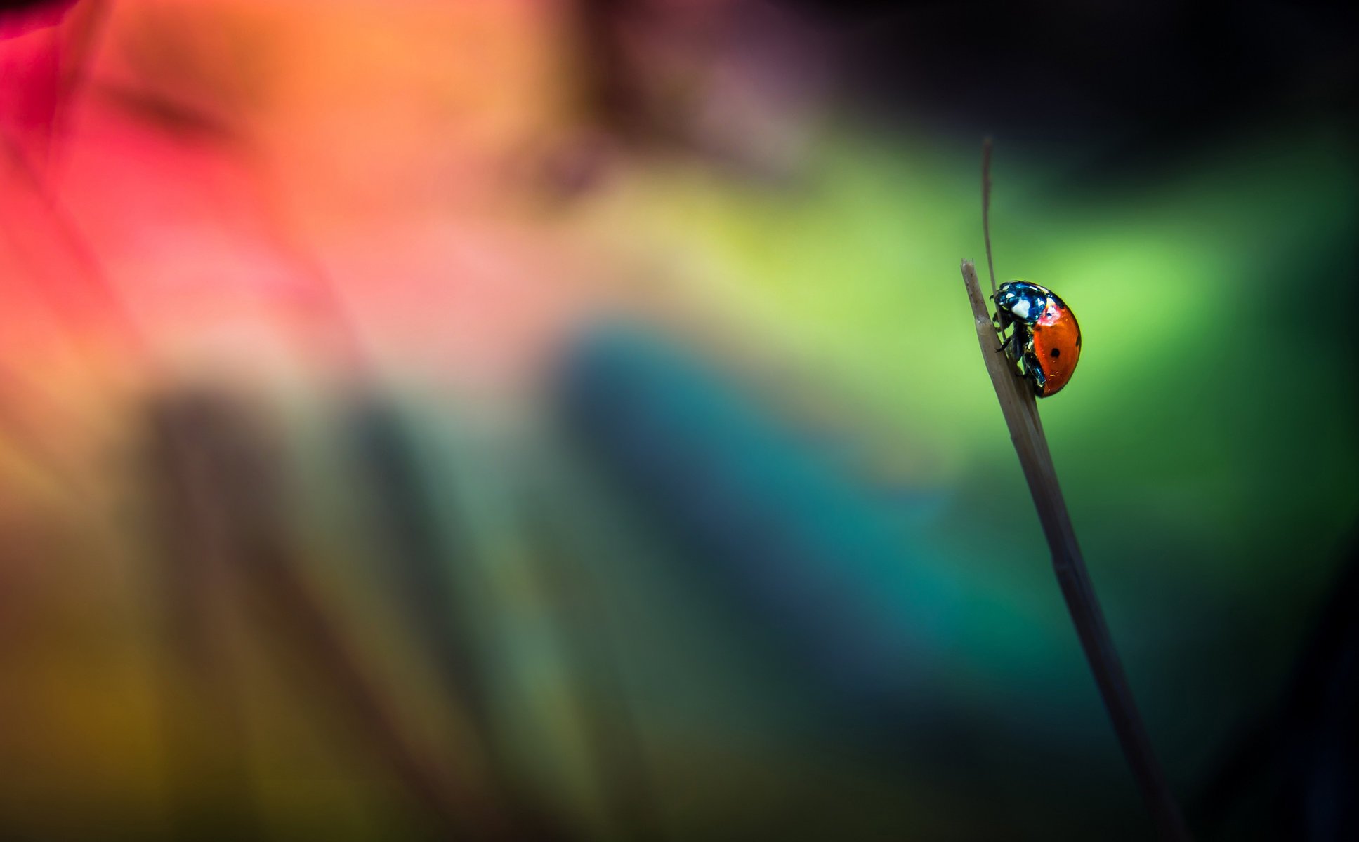 Coccinelle sur une mince branche