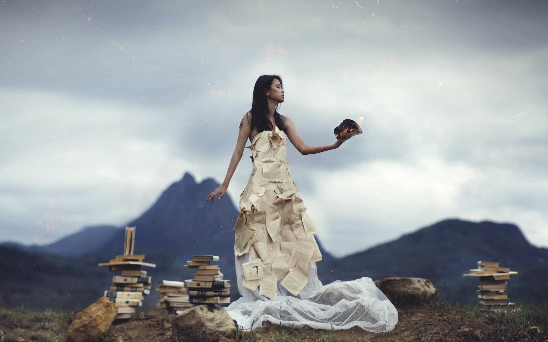 La jeune fille dans l'original de la robe de pages du livreLa jeune fille dans l'original de la robe de pages du livre