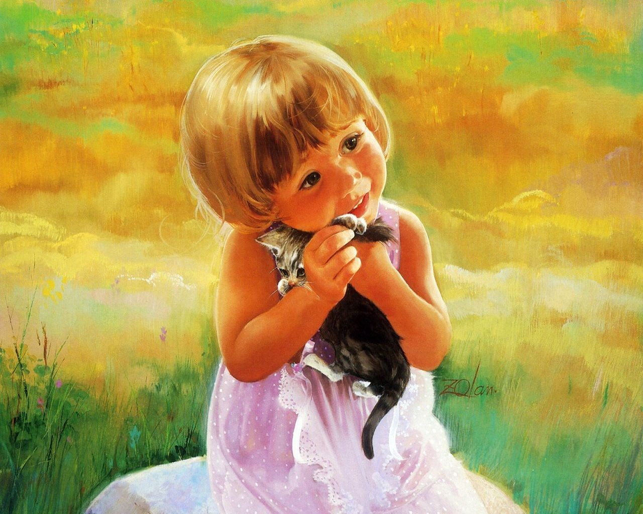 Photo d'une jolie fille avec un petit chaton