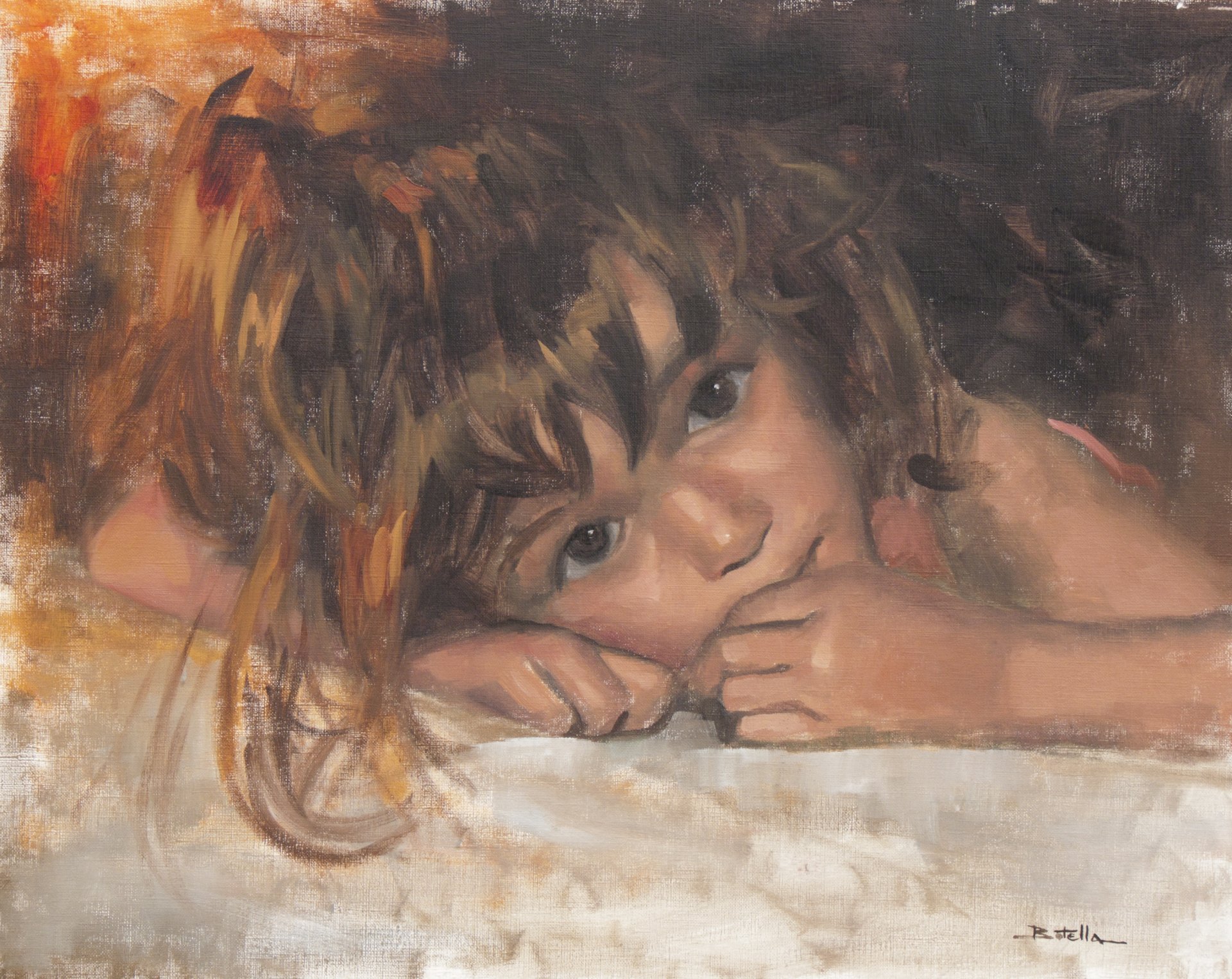 Petite fille avec les yeux verts et les cheveux noirs avec une plumePetite fille avec les yeux verts et les cheveux noirs avec une plume