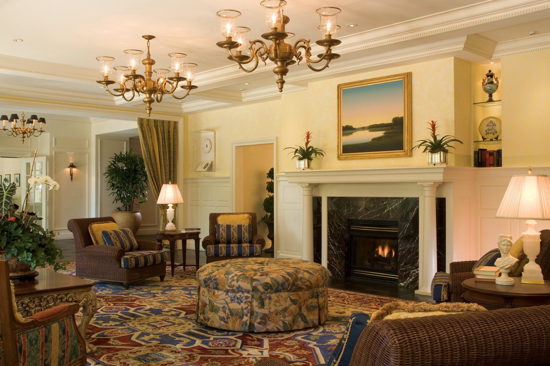 Intérieur de la salle de séjour avec cheminée