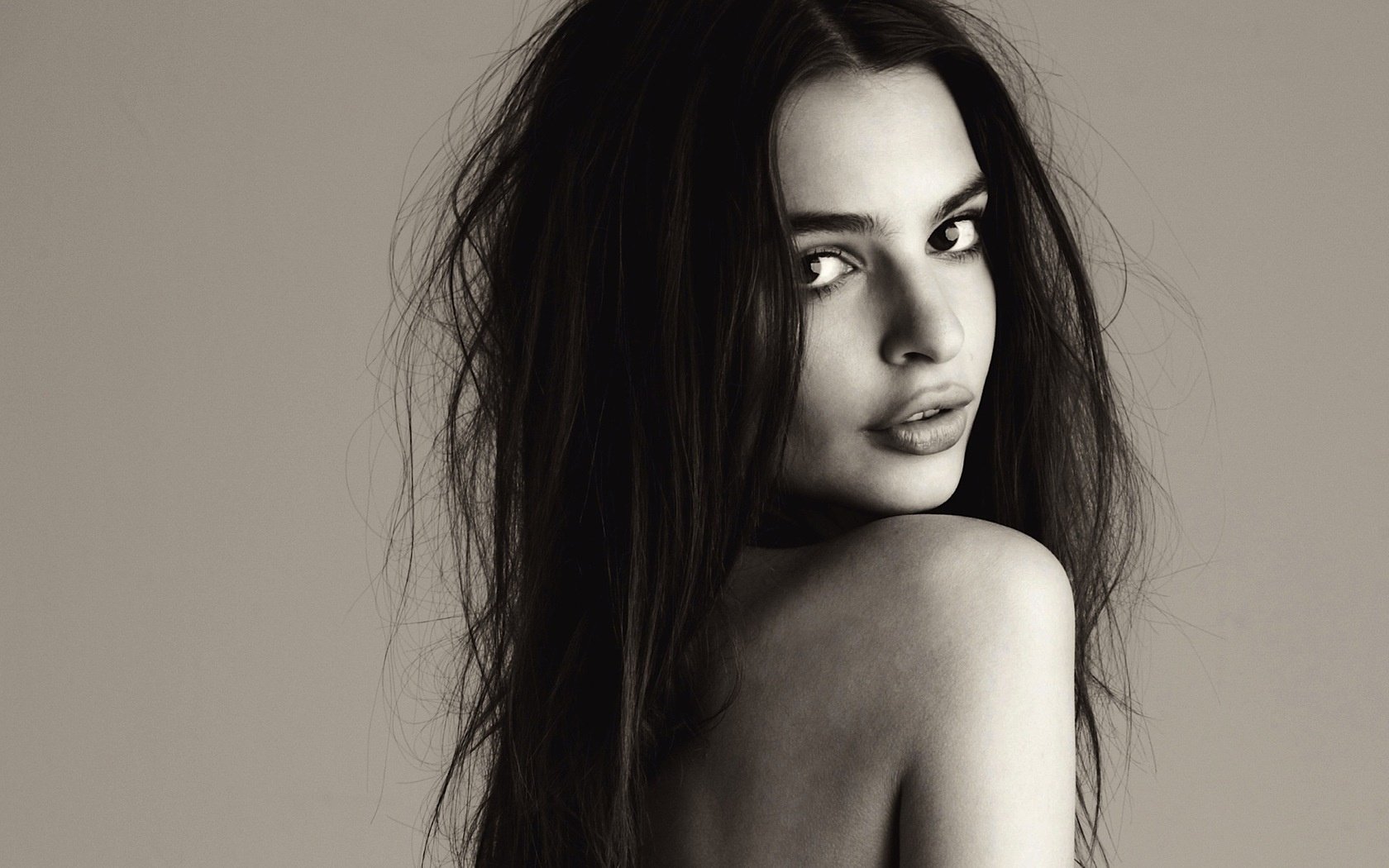 Modèle nu se retourne sur son épaule