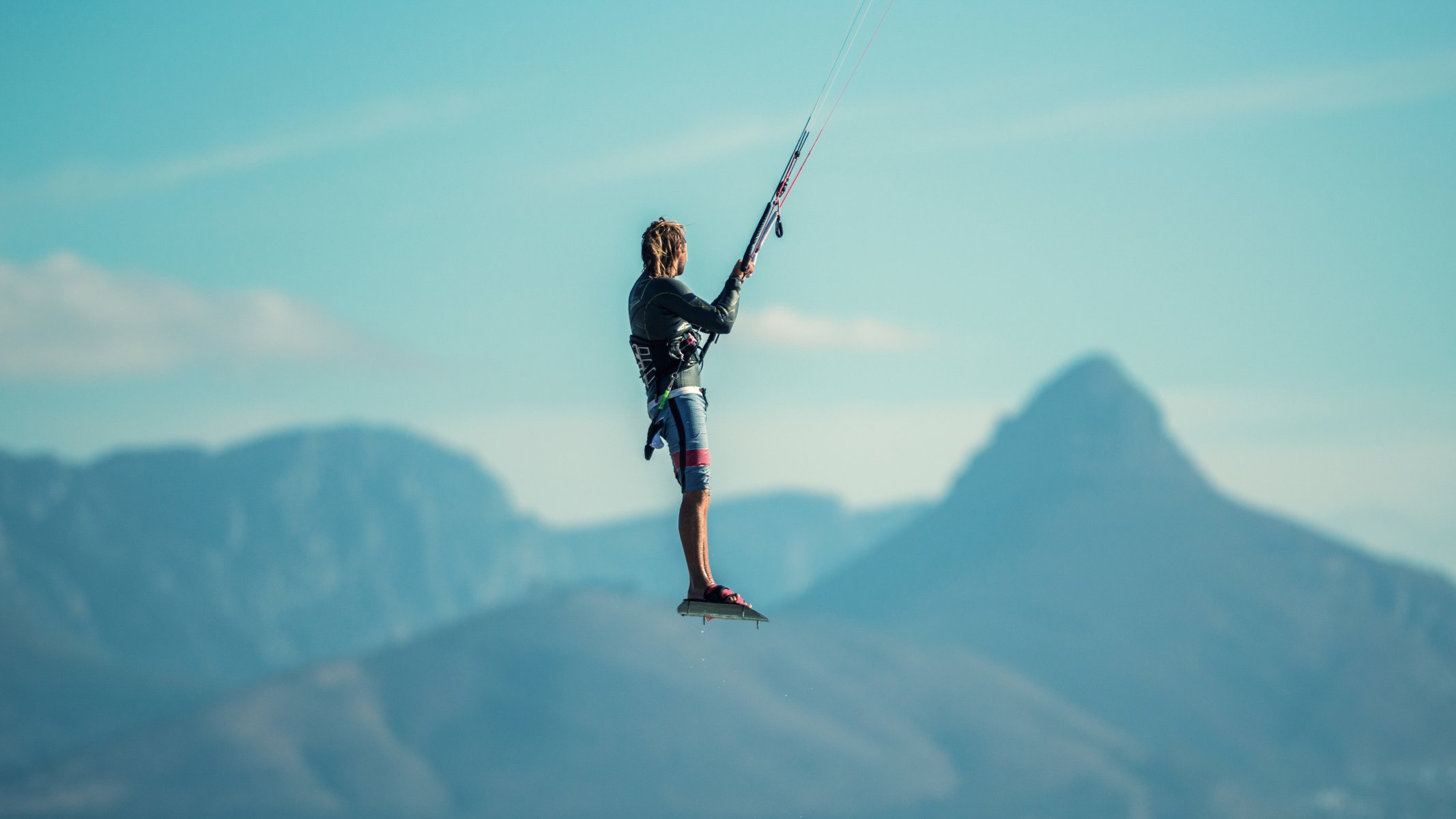 Surf et kitesurf sur fond de ciel Azur et de la mer sans fin
