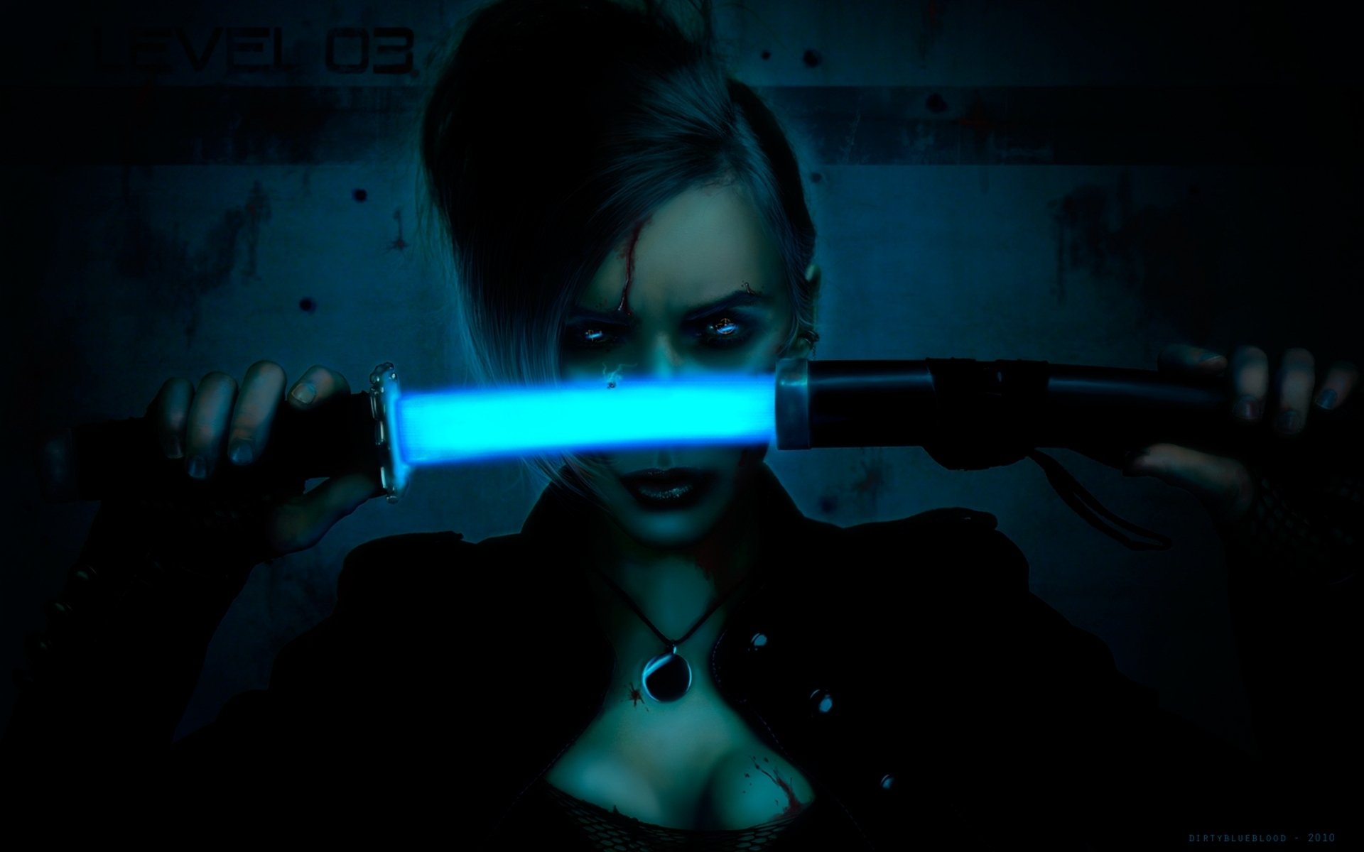 Le regard assoiffé de sang de la jeune fille sous le poignardLe regard assoiffé de sang de la jeune fille sous le poignard