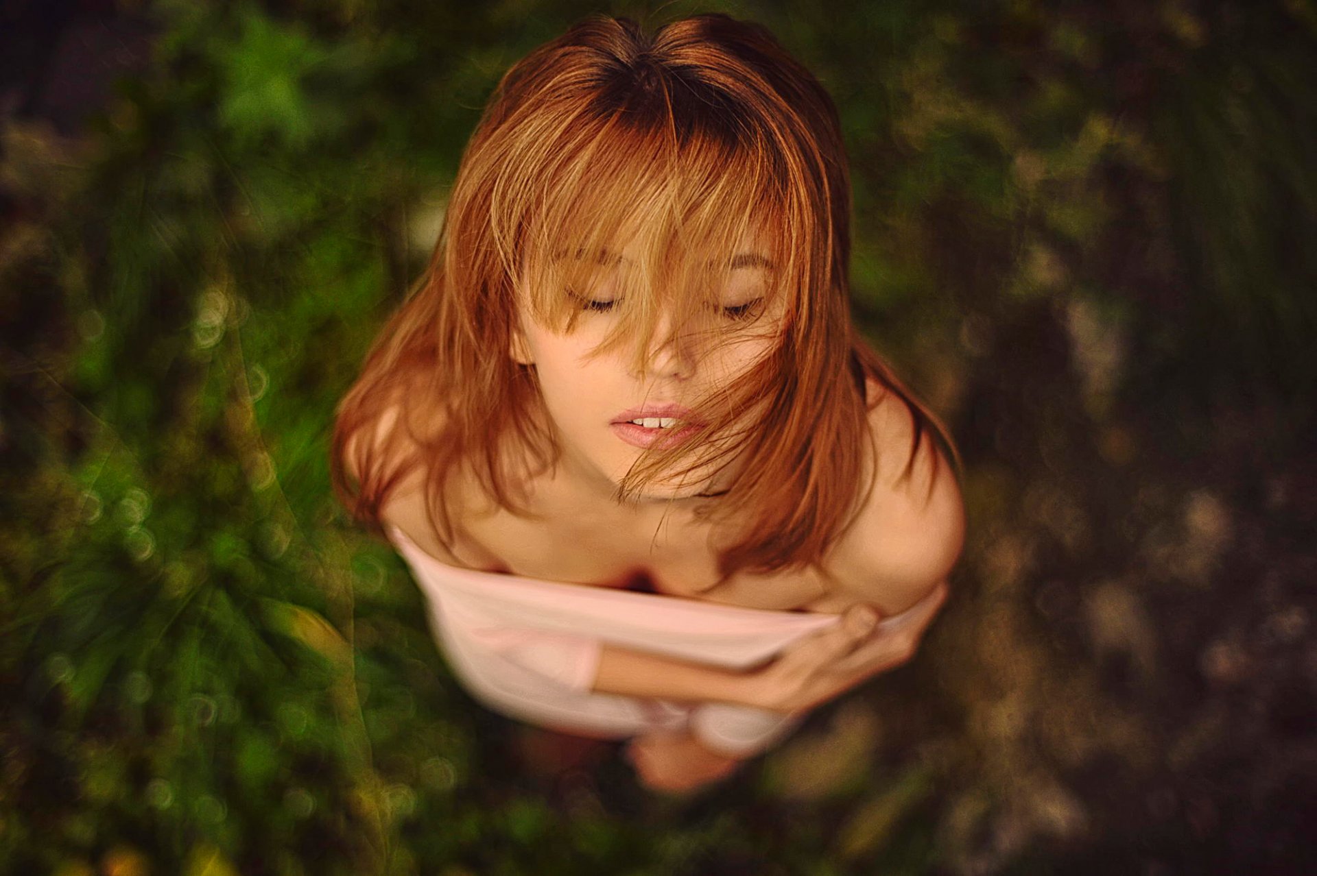 Fille avec les cheveux roux lâches et les épaules nuesFille avec les cheveux roux lâches et les épaules nues