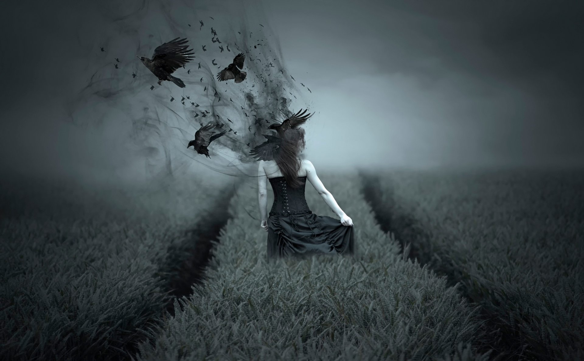 La jeune fille dans les pays en développement dans le vent de la robe blanche, voler autour des feuilles de livres