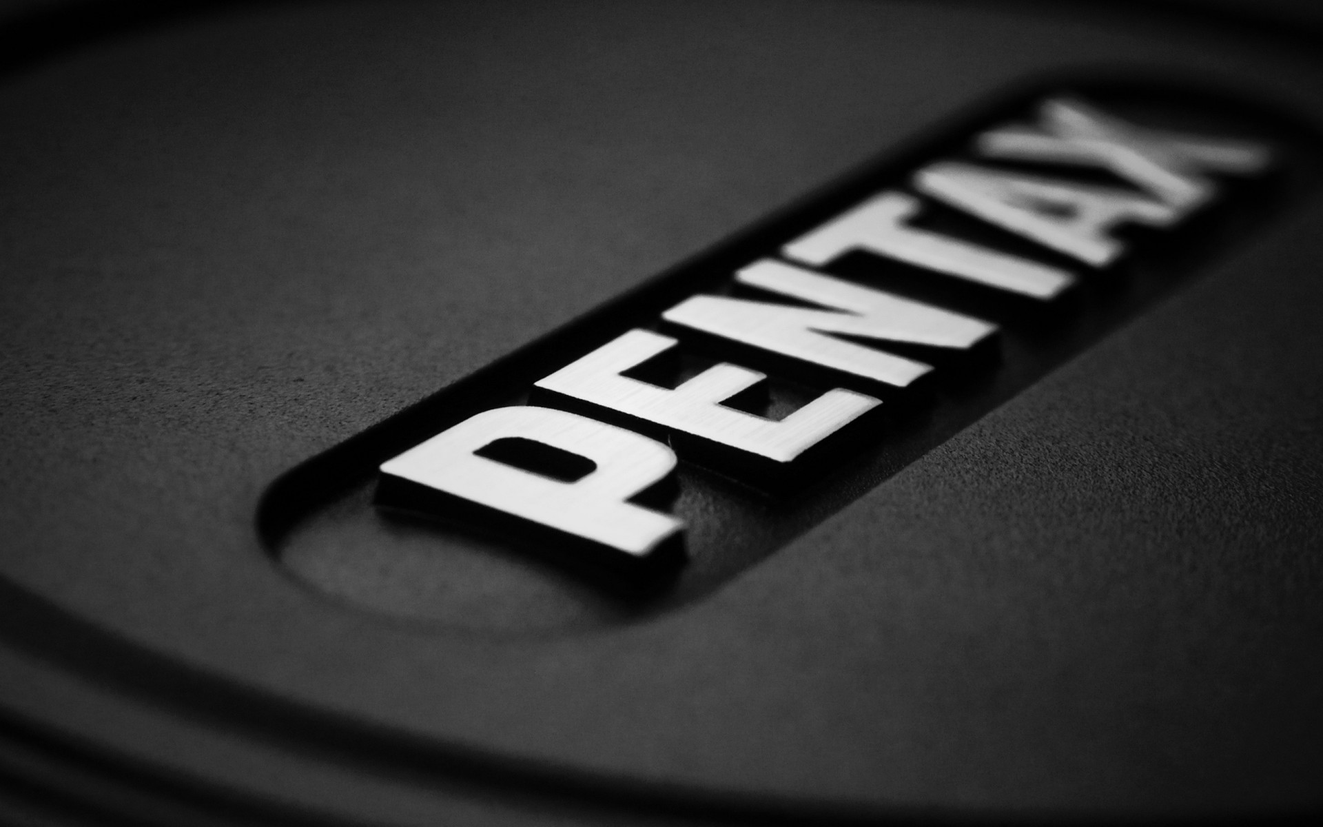 Pentax inscription en lettres blanches sur plastique de couleur foncée