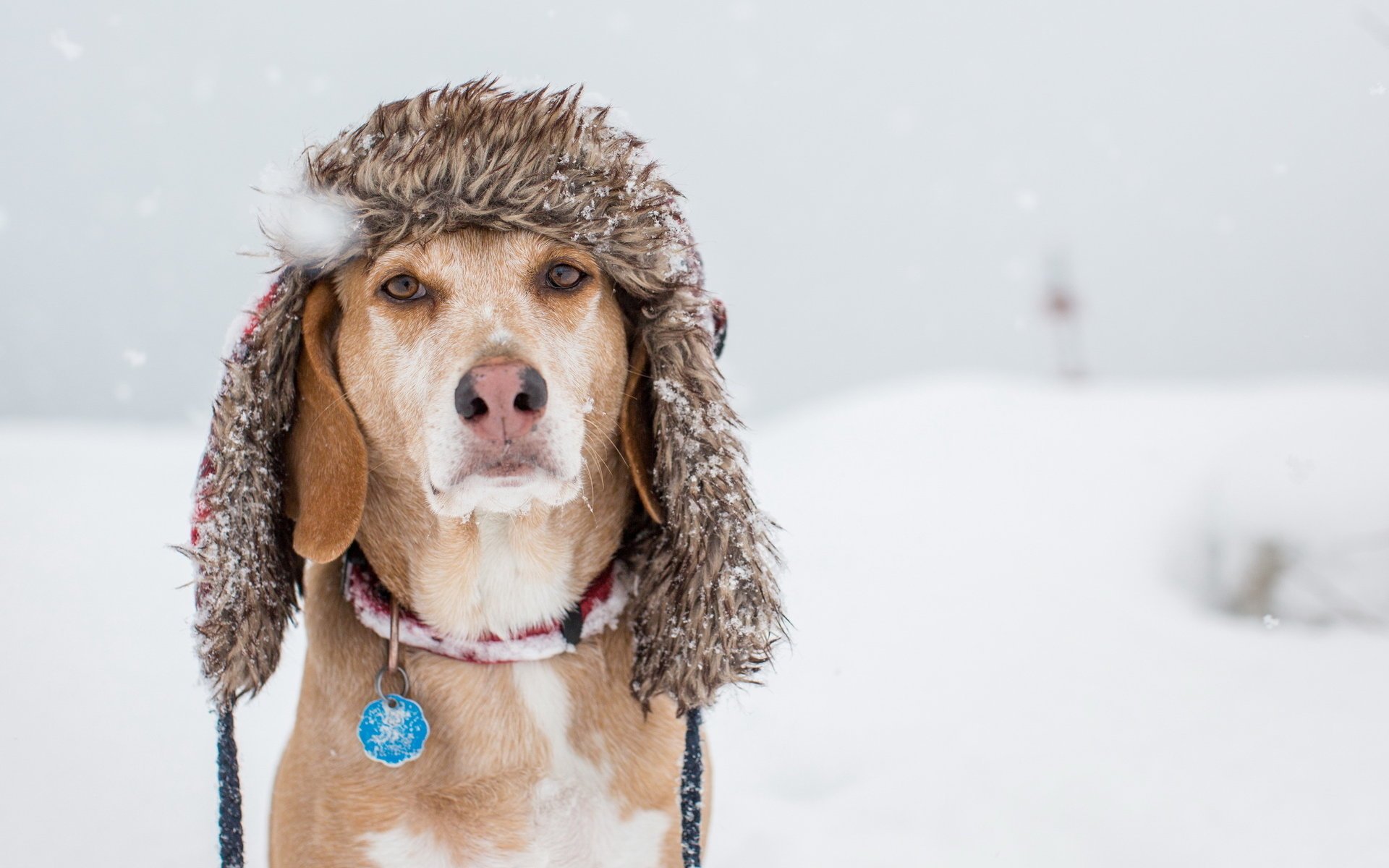 Le chien à poil court a décidé d'isoler sa tête avec un chapeauLe chien à poil court a décidé d'isoler sa tête avec un chapeau