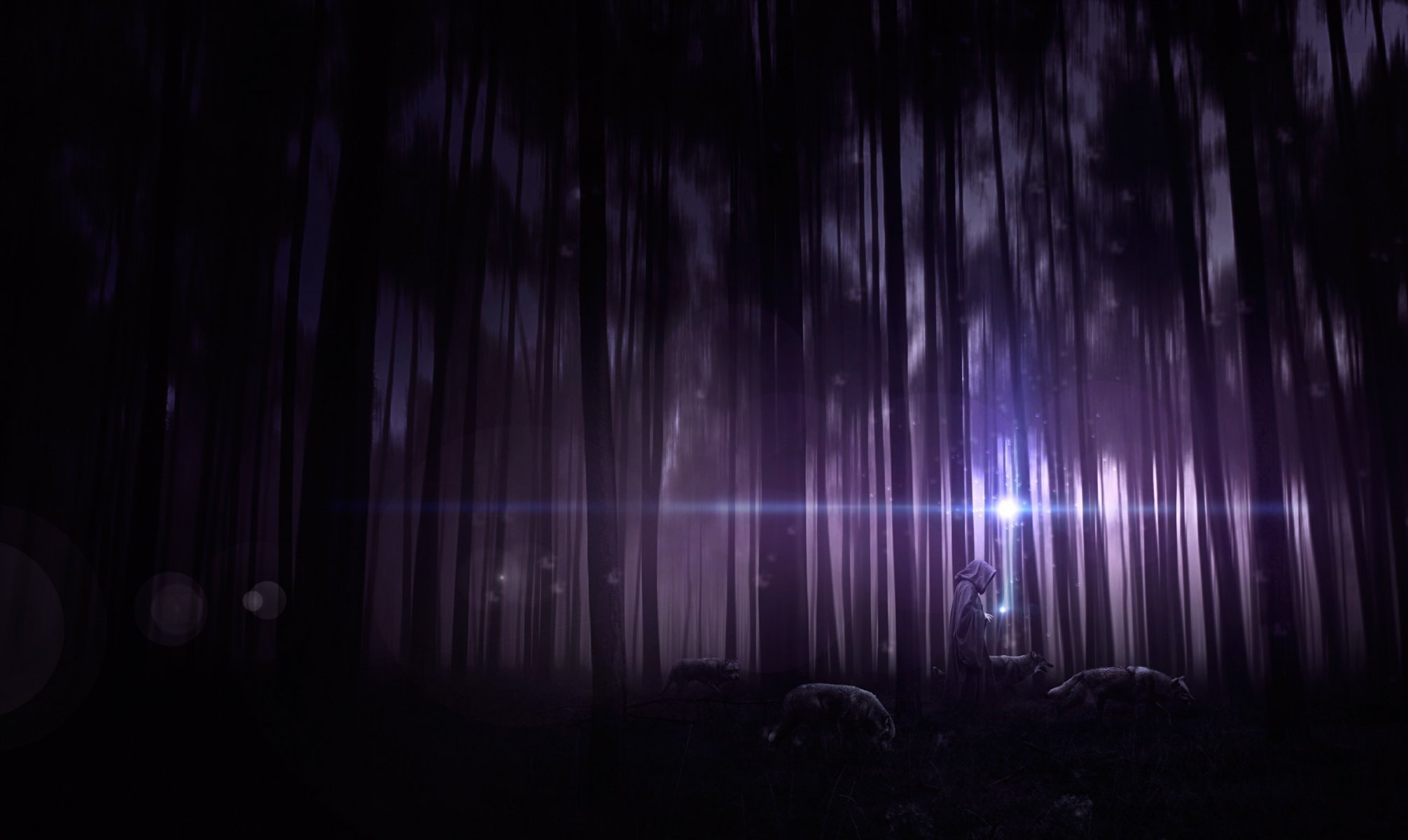 Coquelicot au milieu d'une forêt sombre avec une boule de lumièreCoquelicot au milieu d'une forêt sombre avec une boule de lumière