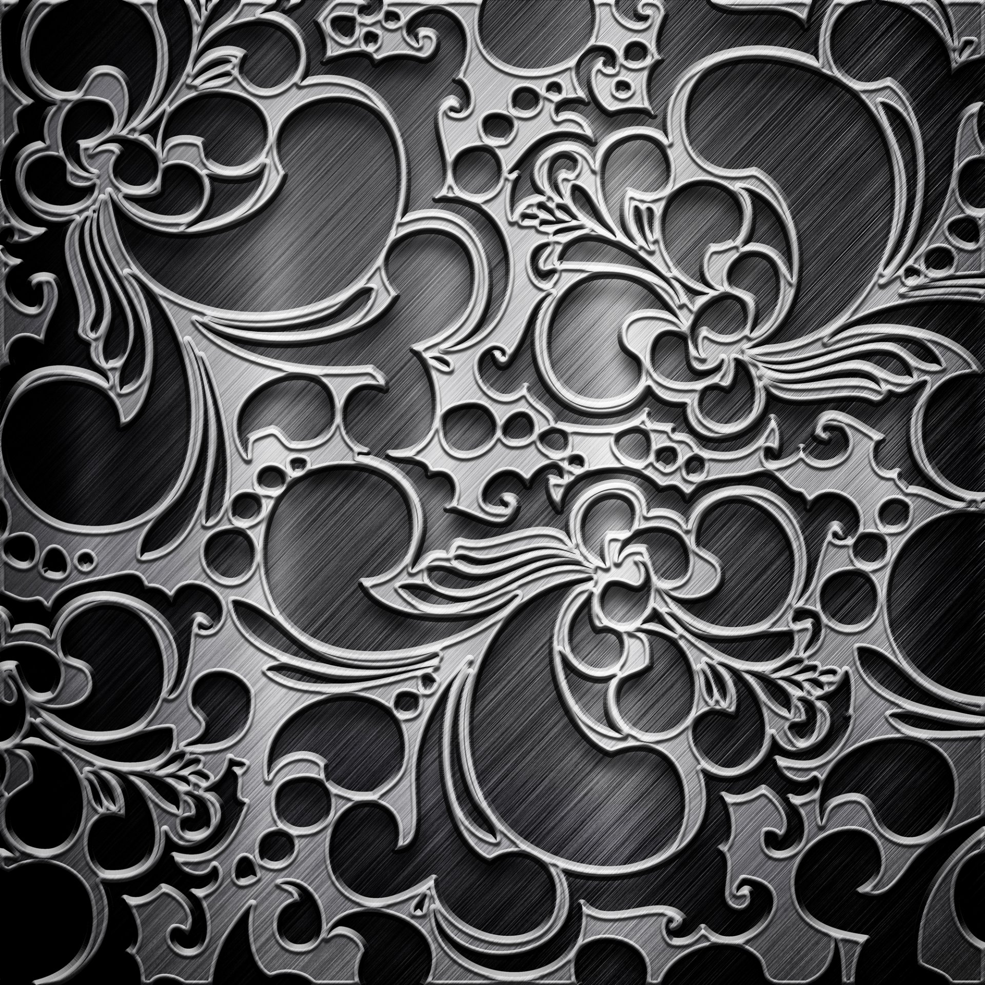 Motif métallique gris sur fond rayé noir
