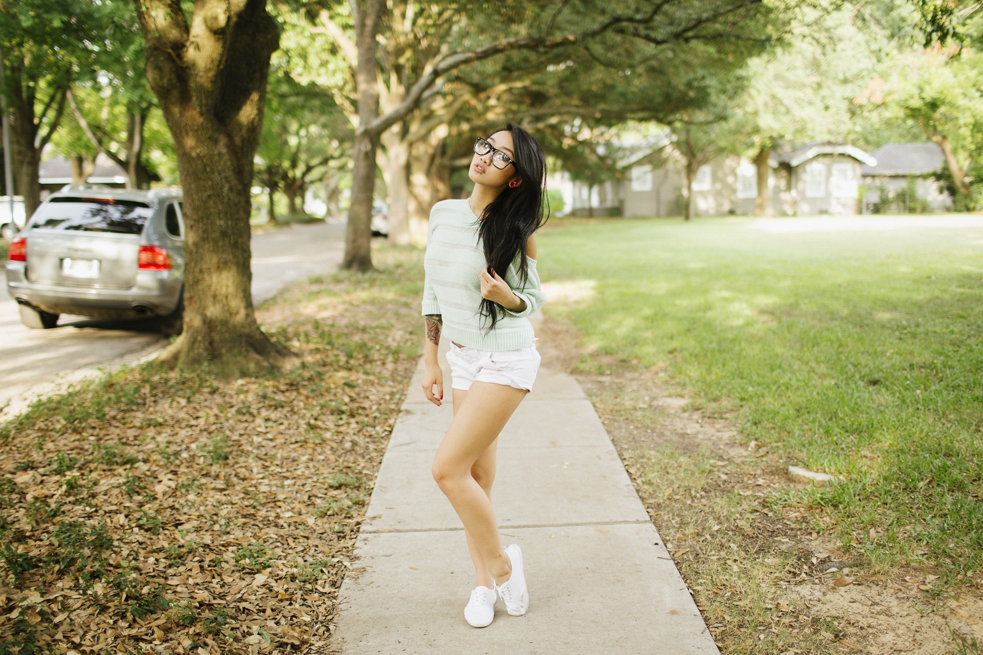 Séance photo pour une fille avec des lunettes et des chaussuresSéance photo pour une fille avec des lunettes et des chaussures