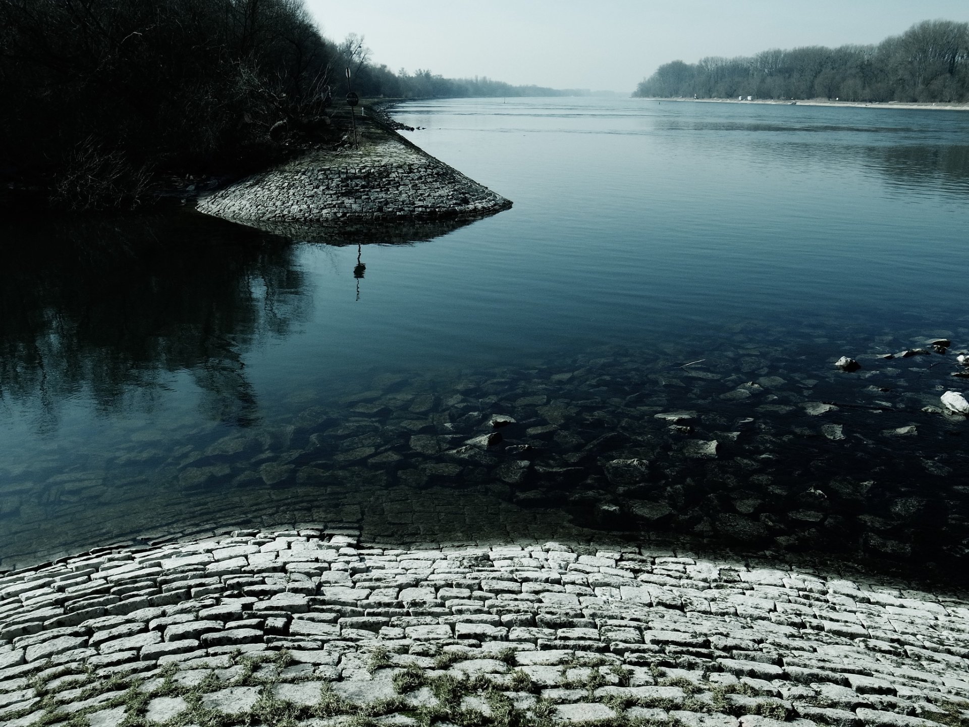 La surface de l'eau au milieu de la forêt et de la pierre de serrureLa surface de l'eau au milieu de la forêt et de la pierre de serrure