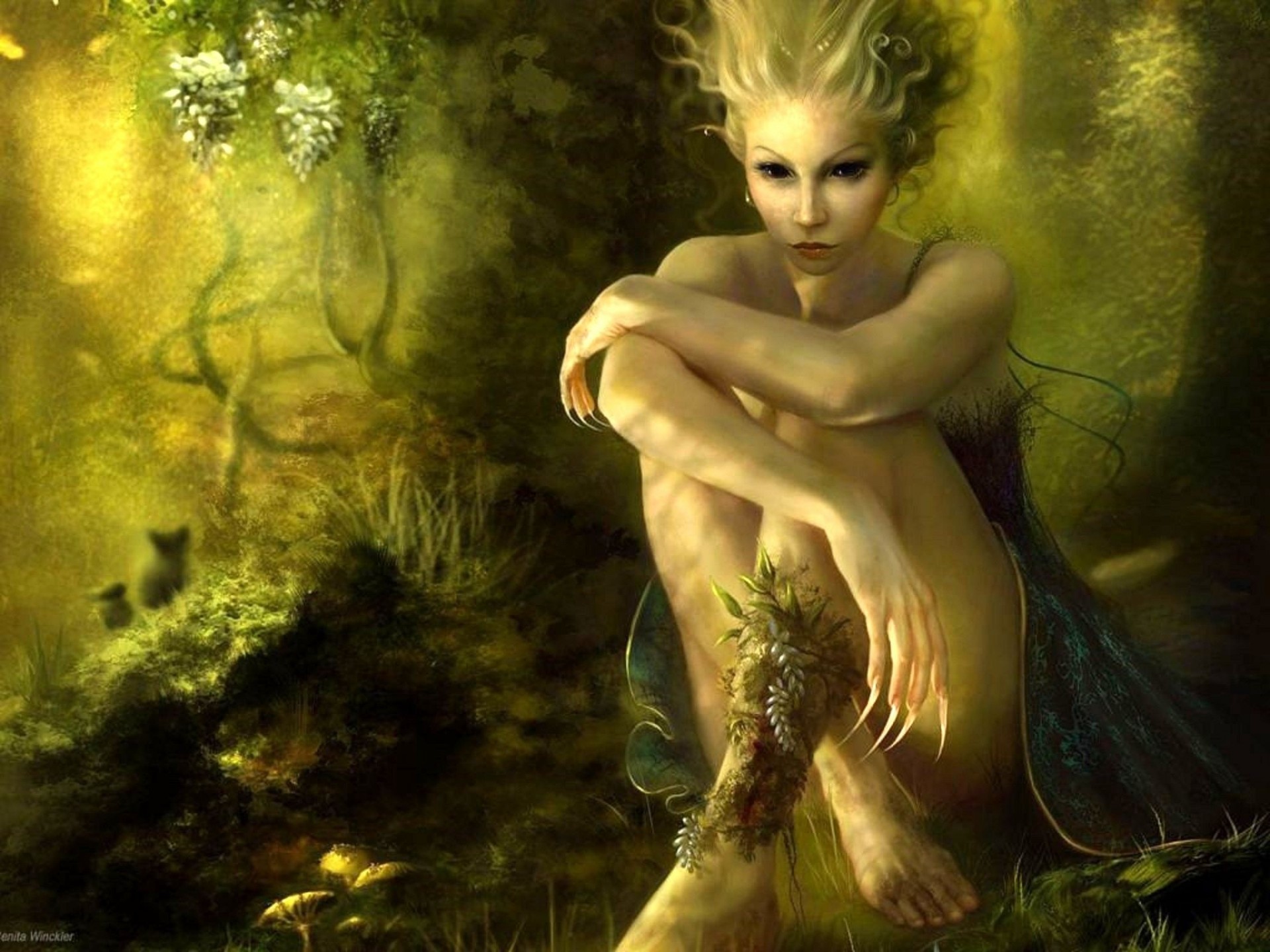 Une femme mythique avec des cornes tient une lumière magique dans sa mainUne femme mythique avec des cornes tient une lumière magique dans sa main