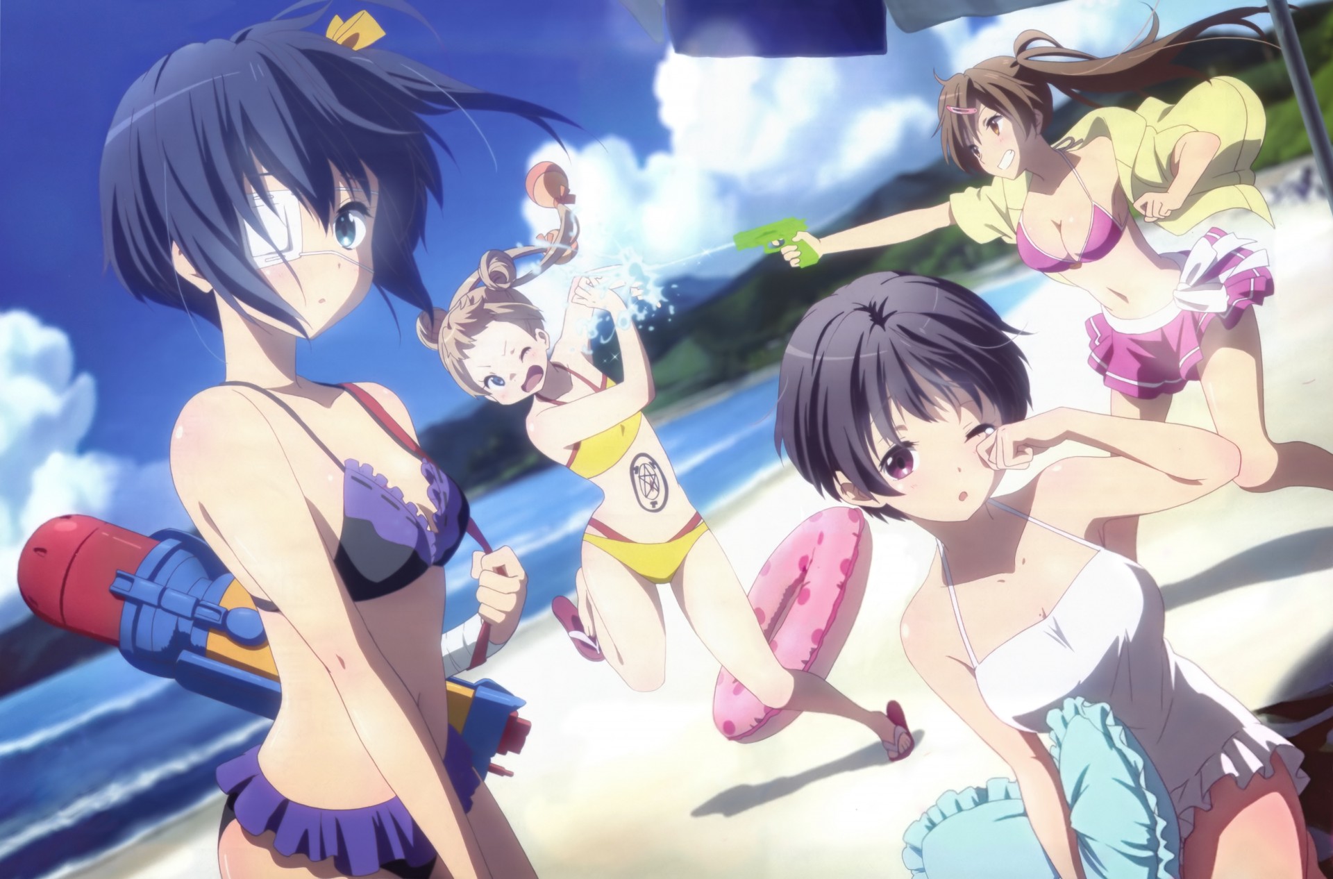 Deux héroïnes d'anime en maillot de bain sur le pont de la piscine