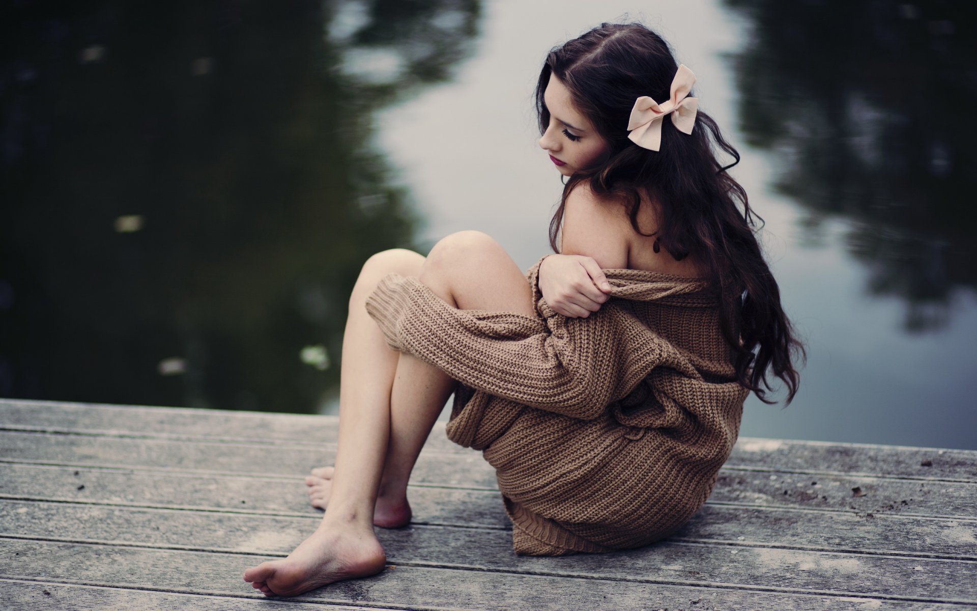 Brunette avec une belle figure se trouve sur le litBrunette avec une belle figure se trouve sur le lit