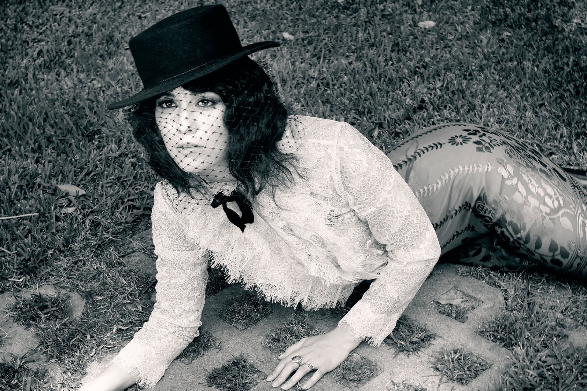 Maria ryabushkina cul juteux dans la nature en regardant la caméra