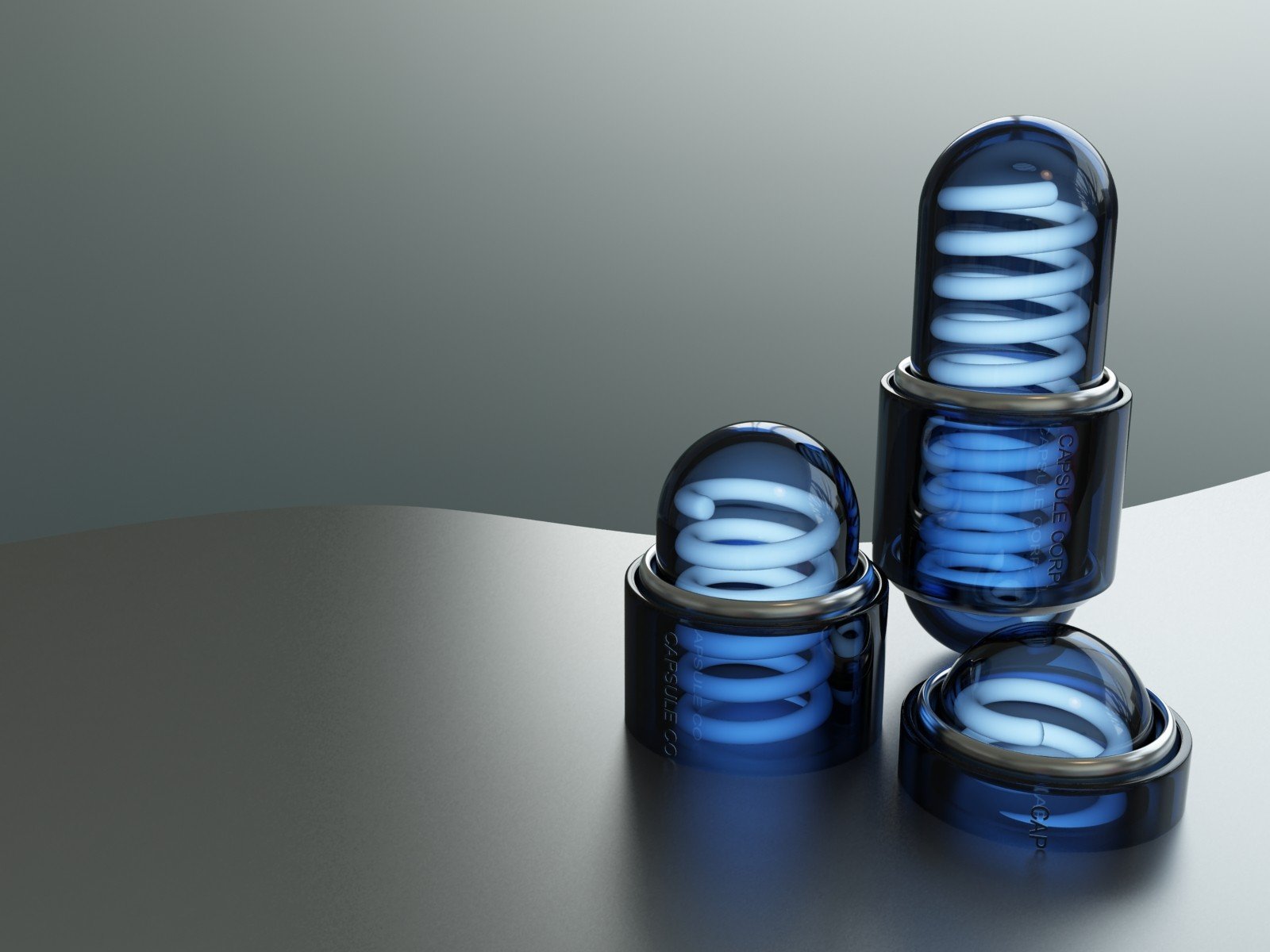 Une spirale blanche à l'intérieur de la capsule émet une lumière bleueUne spirale blanche à l'intérieur de la capsule émet une lumière bleue