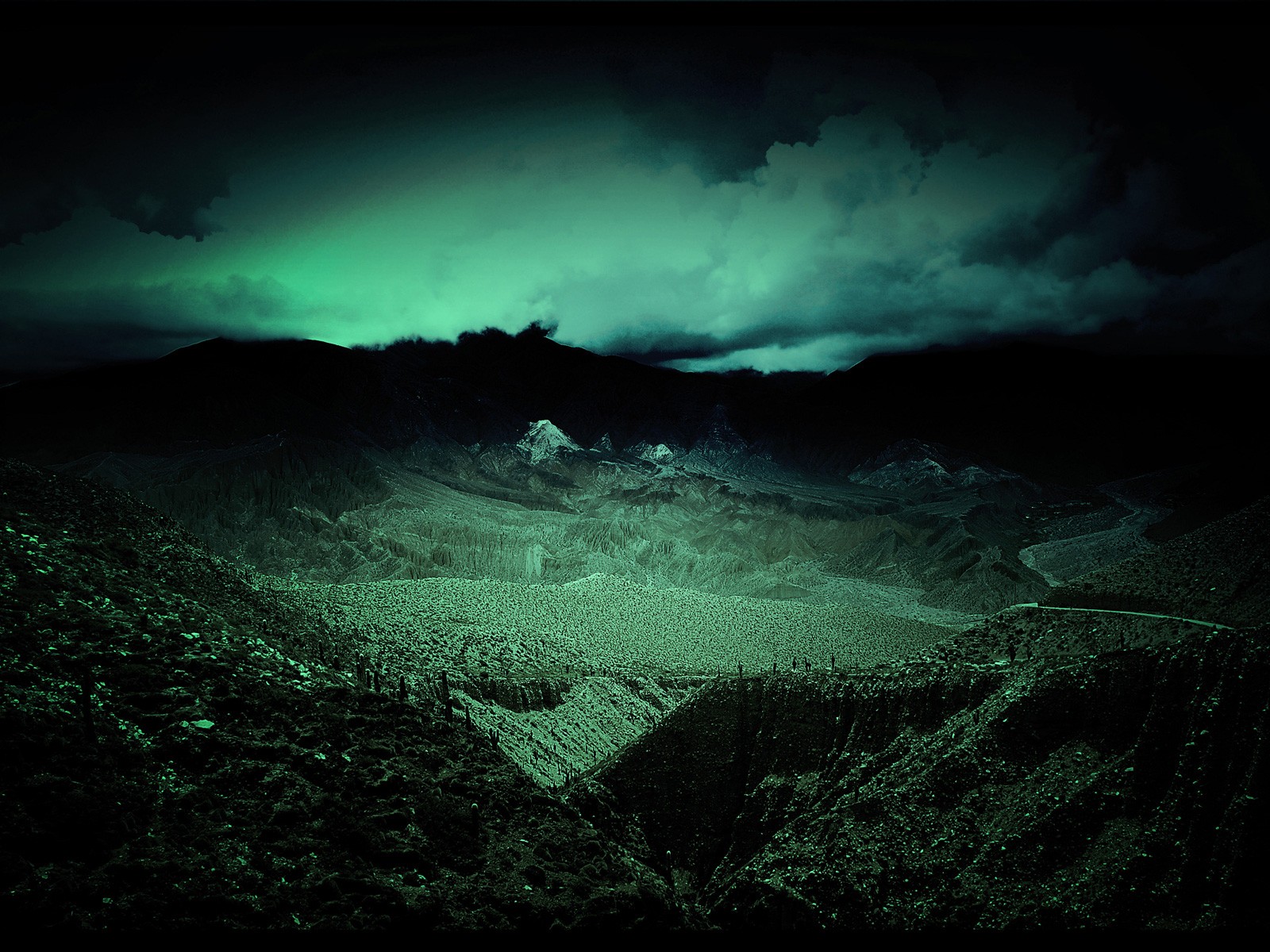 Jeep noire près des montagnes et des rochers dans le sableJeep noire près des montagnes et des rochers dans le sable