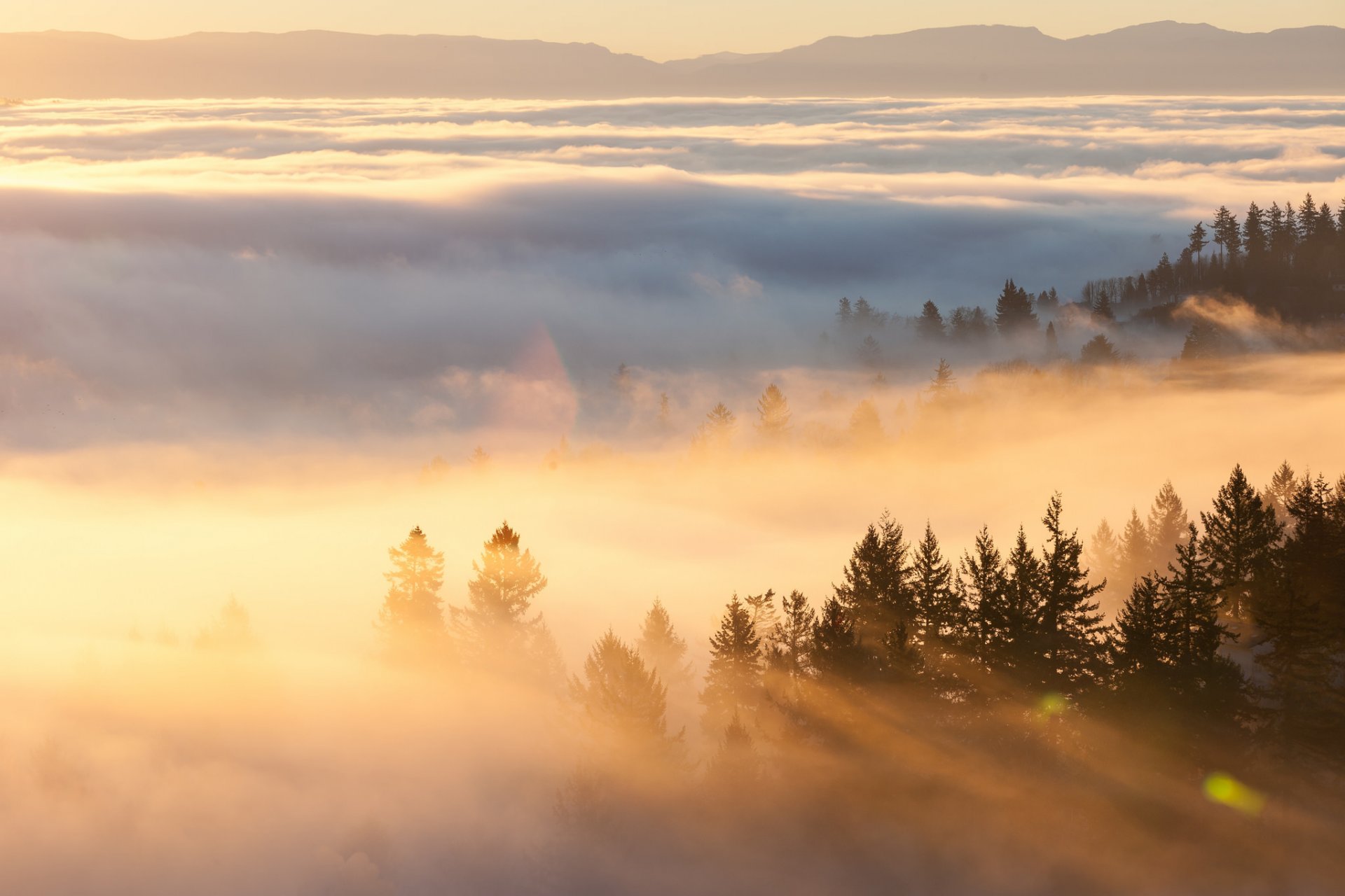 Les sapins sont visibles au milieu de la brume matinaleLes sapins sont visibles au milieu de la brume matinale