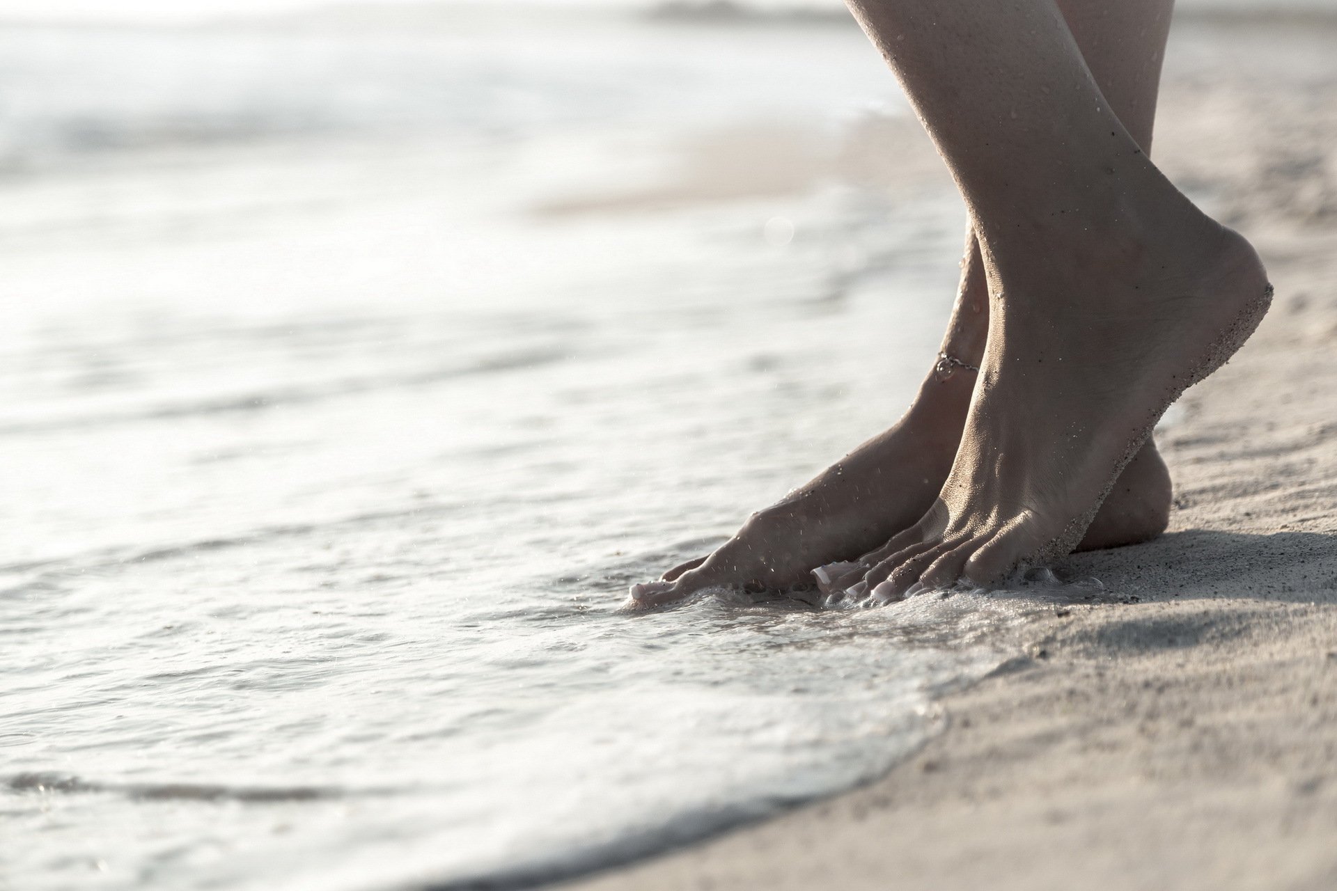 Pieds nus mer mousse plage de sable