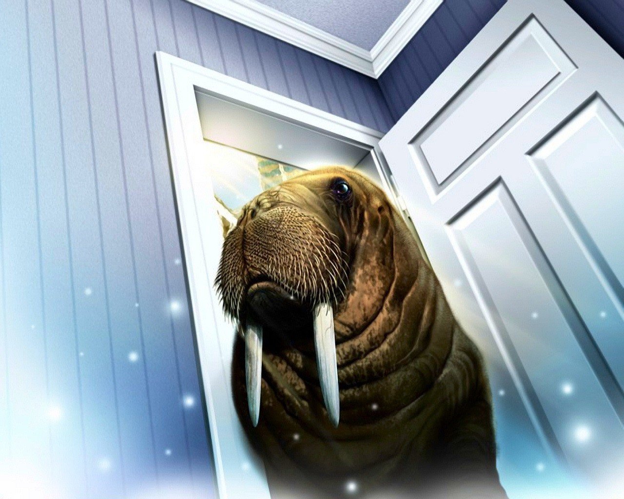 Morse avec des défenses dans la porte ouverte