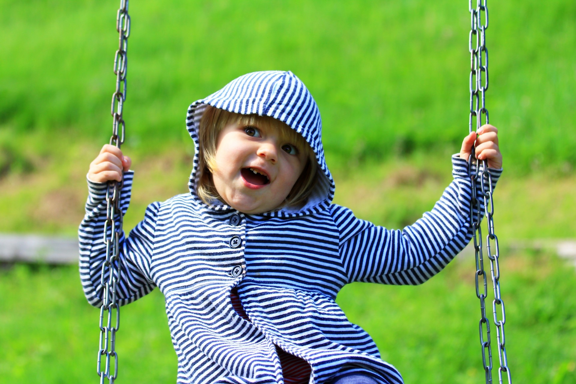 L'enfant se balance sur une balançoire. jolie fille souriante moucheL'enfant se balance sur une balançoire. Jolie fille souriante mouche