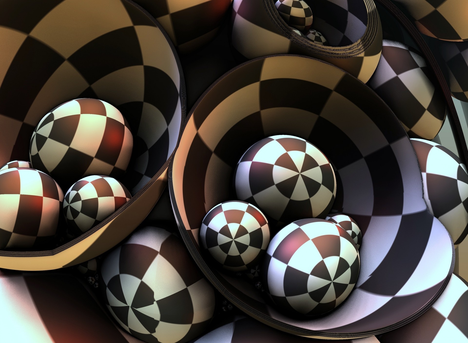 Boules volumétriques avec motif d'échecs dans des récipientsBoules volumétriques avec motif d'échecs dans des récipients