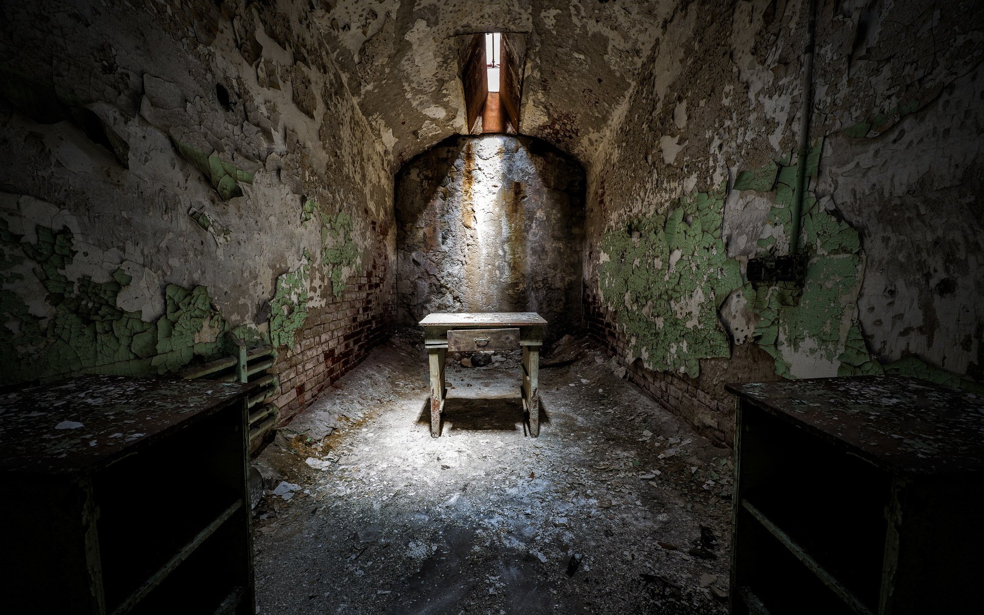 Chambre avec des grilles sur les fenêtres. peinture sur les mursChambre avec des grilles sur les fenêtres. Peinture sur les murs