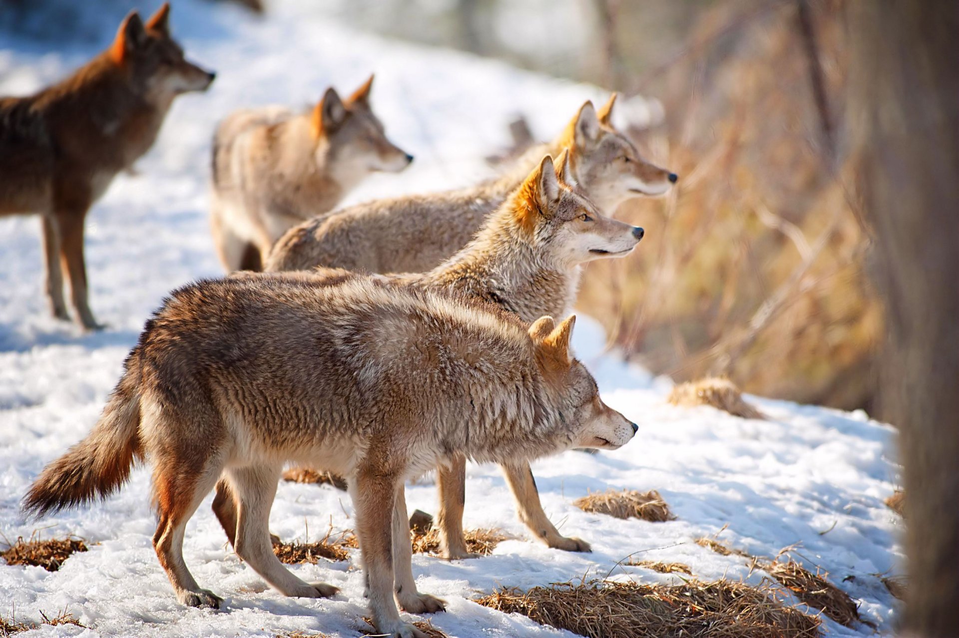 Troupeau de loups en hiver sur la neige dans la forêtTroupeau de loups en hiver sur la neige dans la forêt