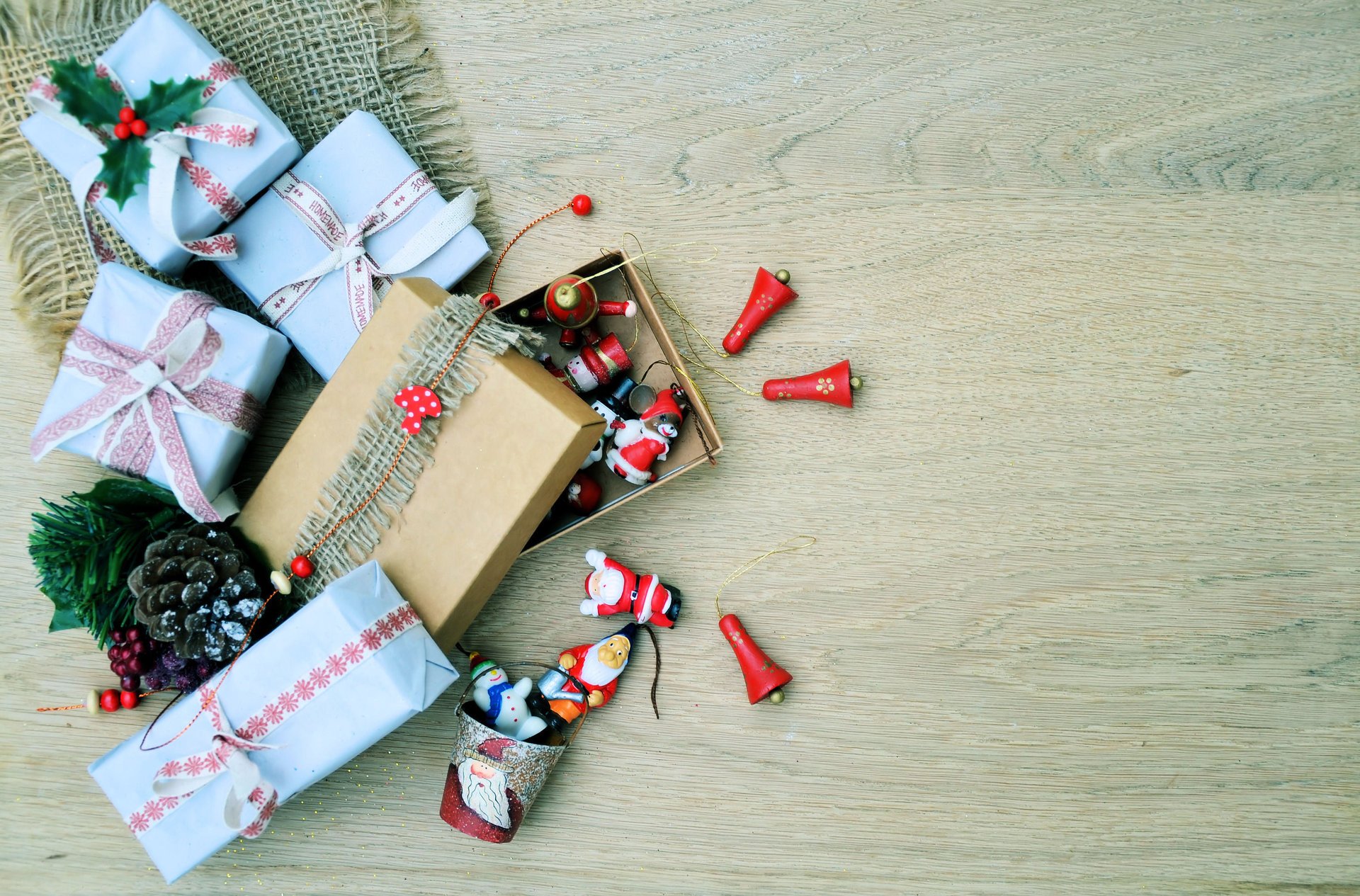 Décoration de noël avec des cônes et des boîtes