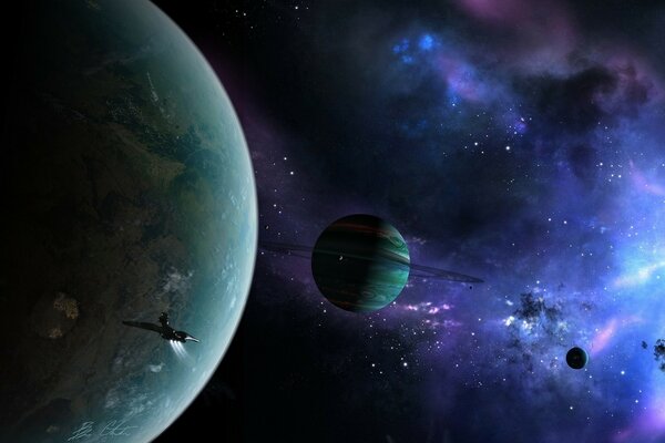 Orbite de la planète avec vue sur l'espace et la distance cosmiqueOrbite de la planète avec vue sur l'espace et la distance cosmique