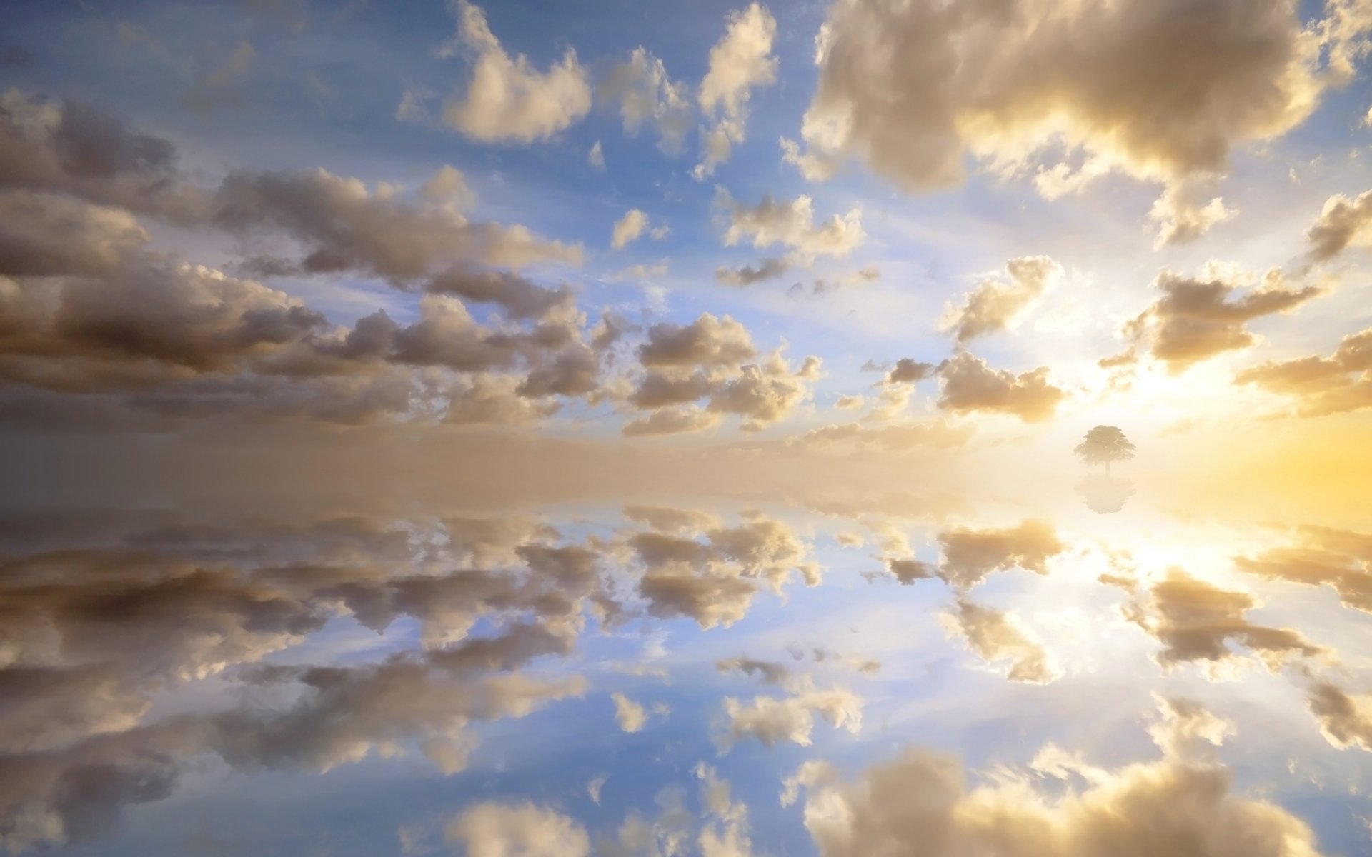 Coucher de soleil ensoleillé traîné nuages