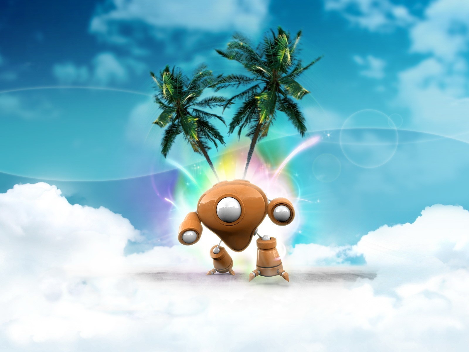 Robot dans les nuages parmi les palmiers