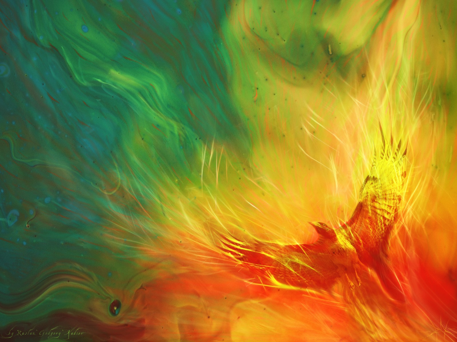 Art avec un oiseau de feu volant