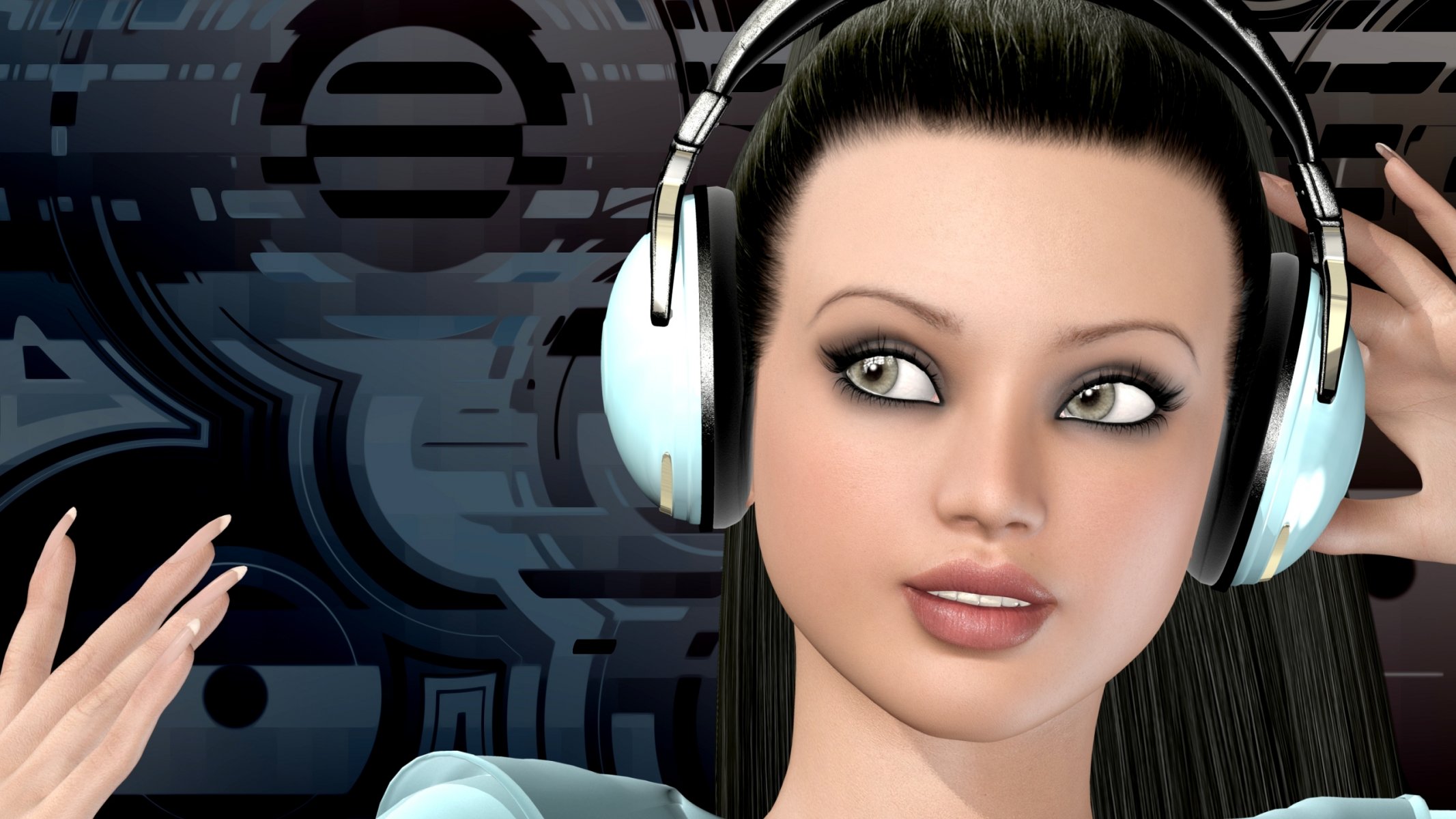 La jeune fille avec des ongles à l'écoute de la musique dans le casqueLa jeune fille avec des ongles à l'écoute de la musique dans le casque