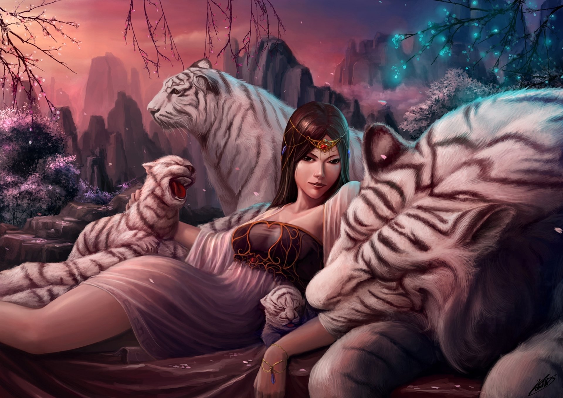 Tigre de couleur de feu lumineux qui descend dans la neige se noyer sur la poitrineTigre de couleur de feu lumineux qui descend dans la neige se noyer sur la poitrine