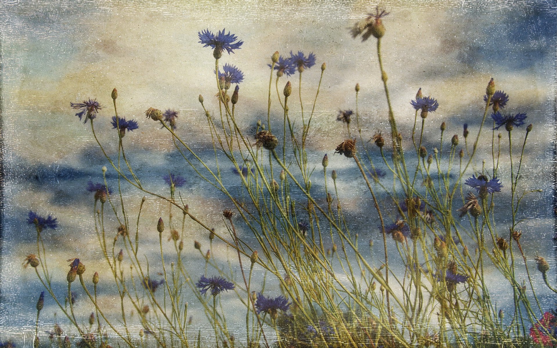 Un coquelicot rouge au milieu d'un champ avec des fleurs bleuesUn coquelicot rouge au milieu d'un champ avec des fleurs bleues