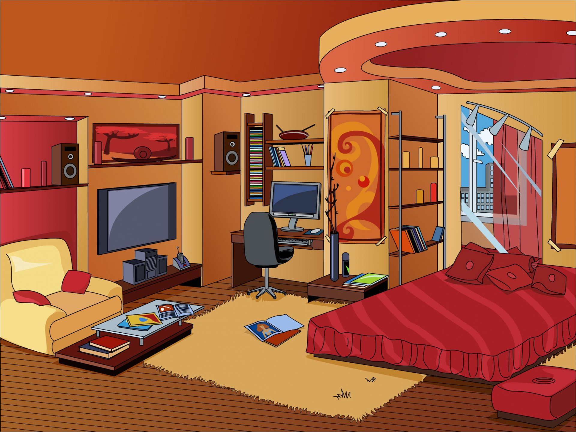 Chambre design avec intérieur lumineux avec peinture et fenêtre