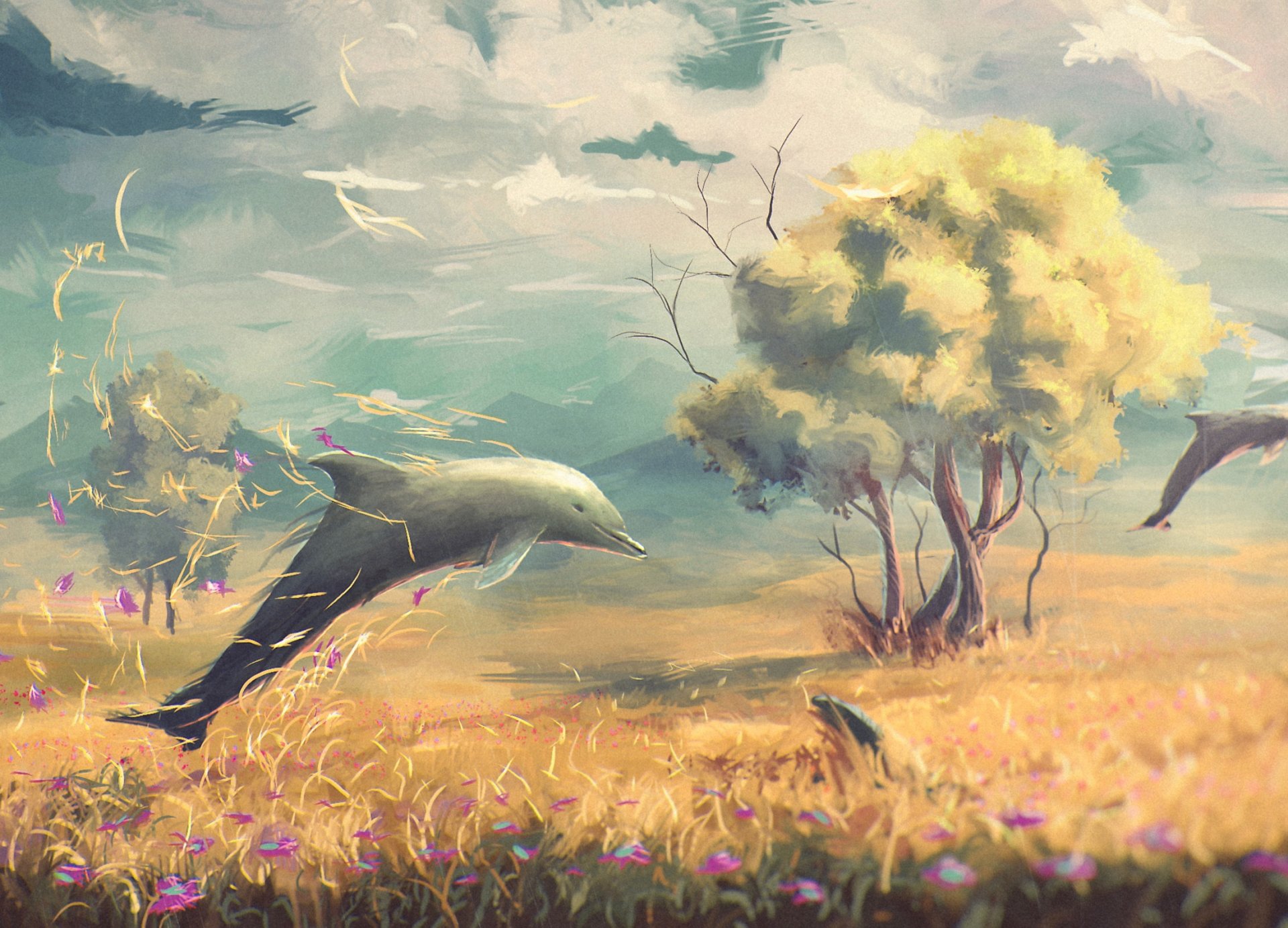 Art peinture animaux avec forêt de nuit mystérieuseArt peinture animaux avec forêt de nuit mystérieuse