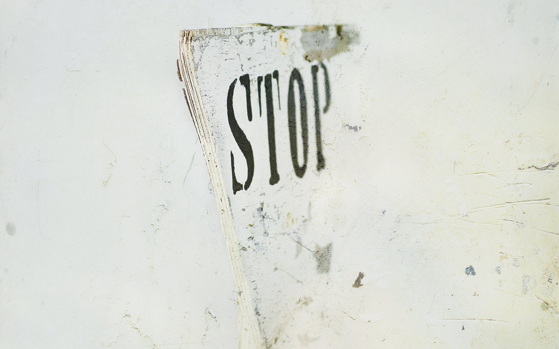 Signe "stop" dans les trous sur le fond des arbresSigne "Stop" dans les trous sur le fond des arbres