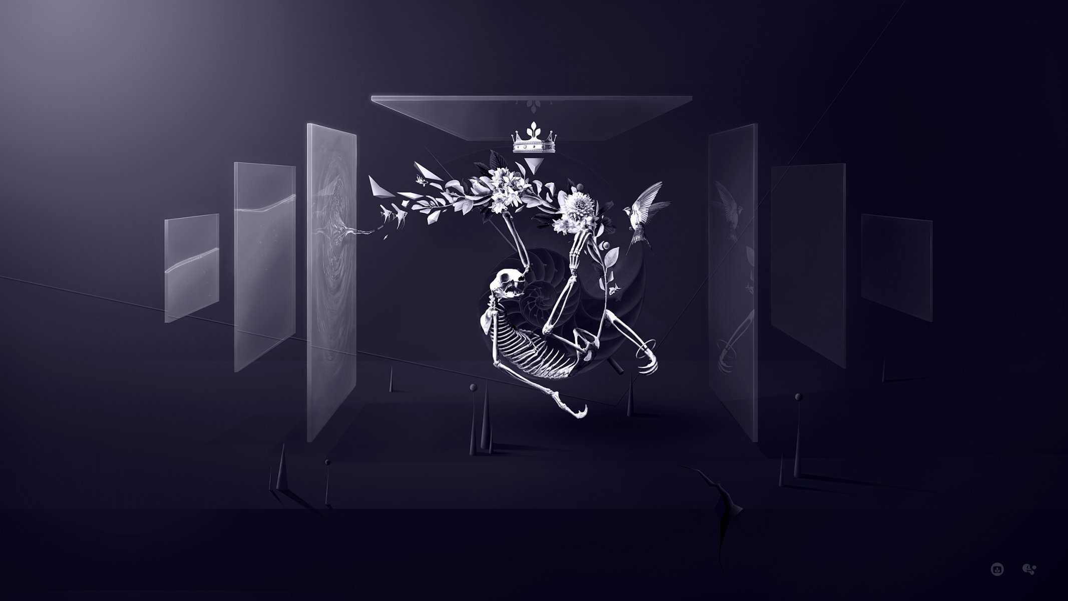 Dessin d'un oiseau de conte de fées se tient près d'une maison avec une trompetteDessin d'un oiseau de conte de fées se tient près d'une maison avec une trompette