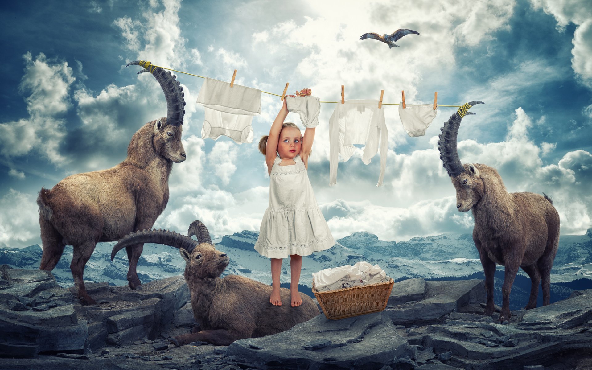 La grande lessive de la petite hôtesse avec помошниками