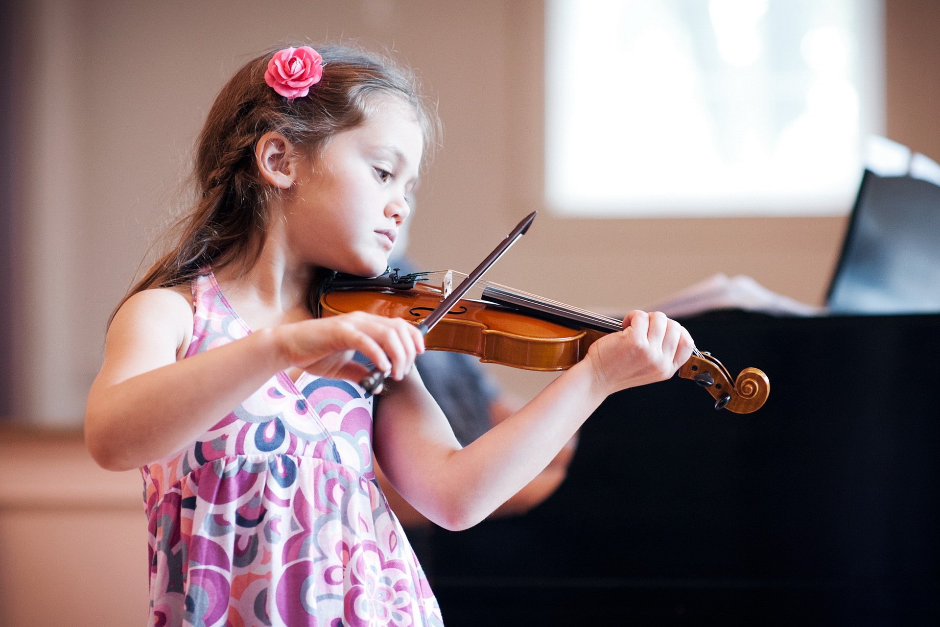 Petite fille dans un bandeau avec une fleur souriante