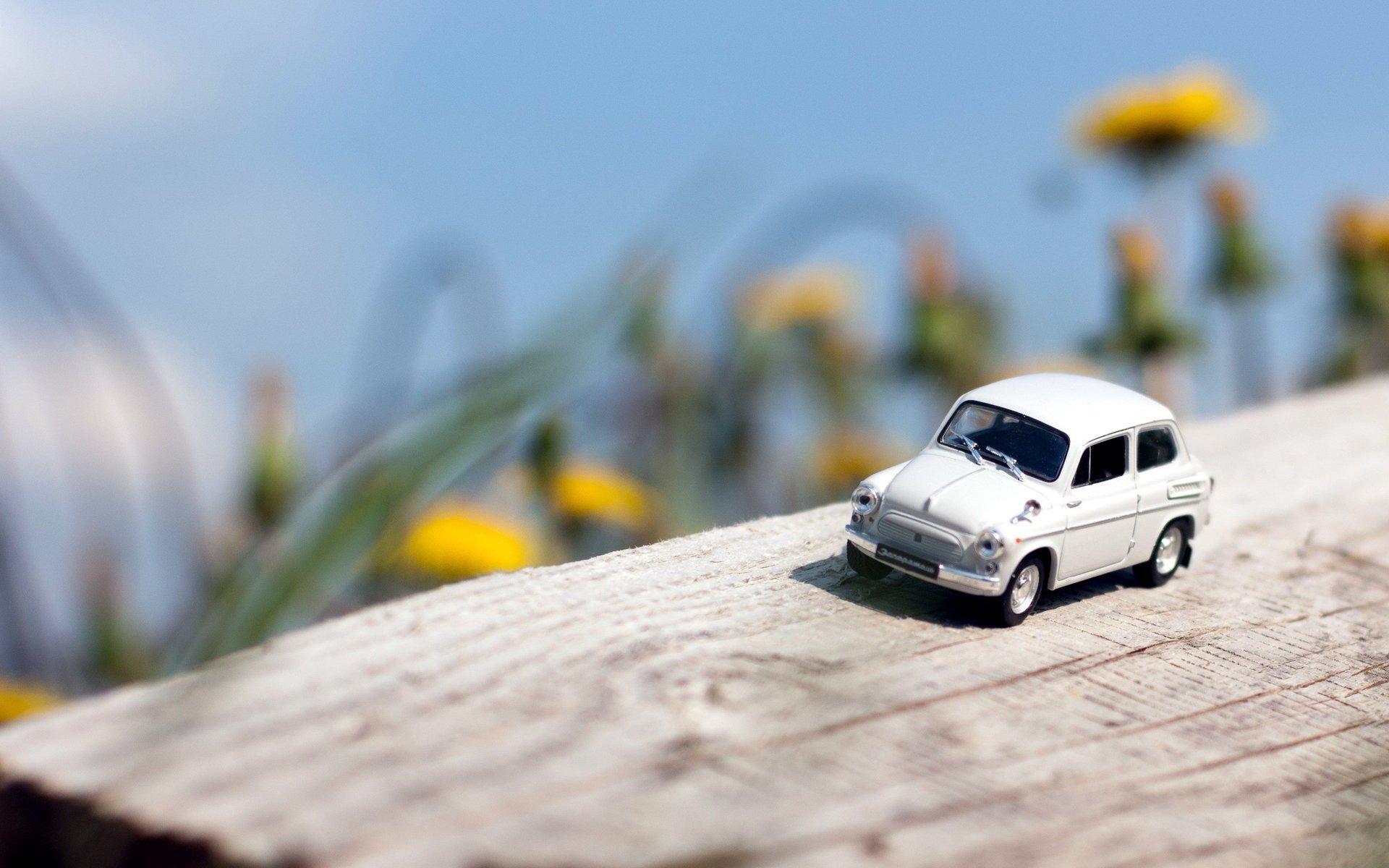 Une petite camionnette volkswagen se tient devant avec des optiques