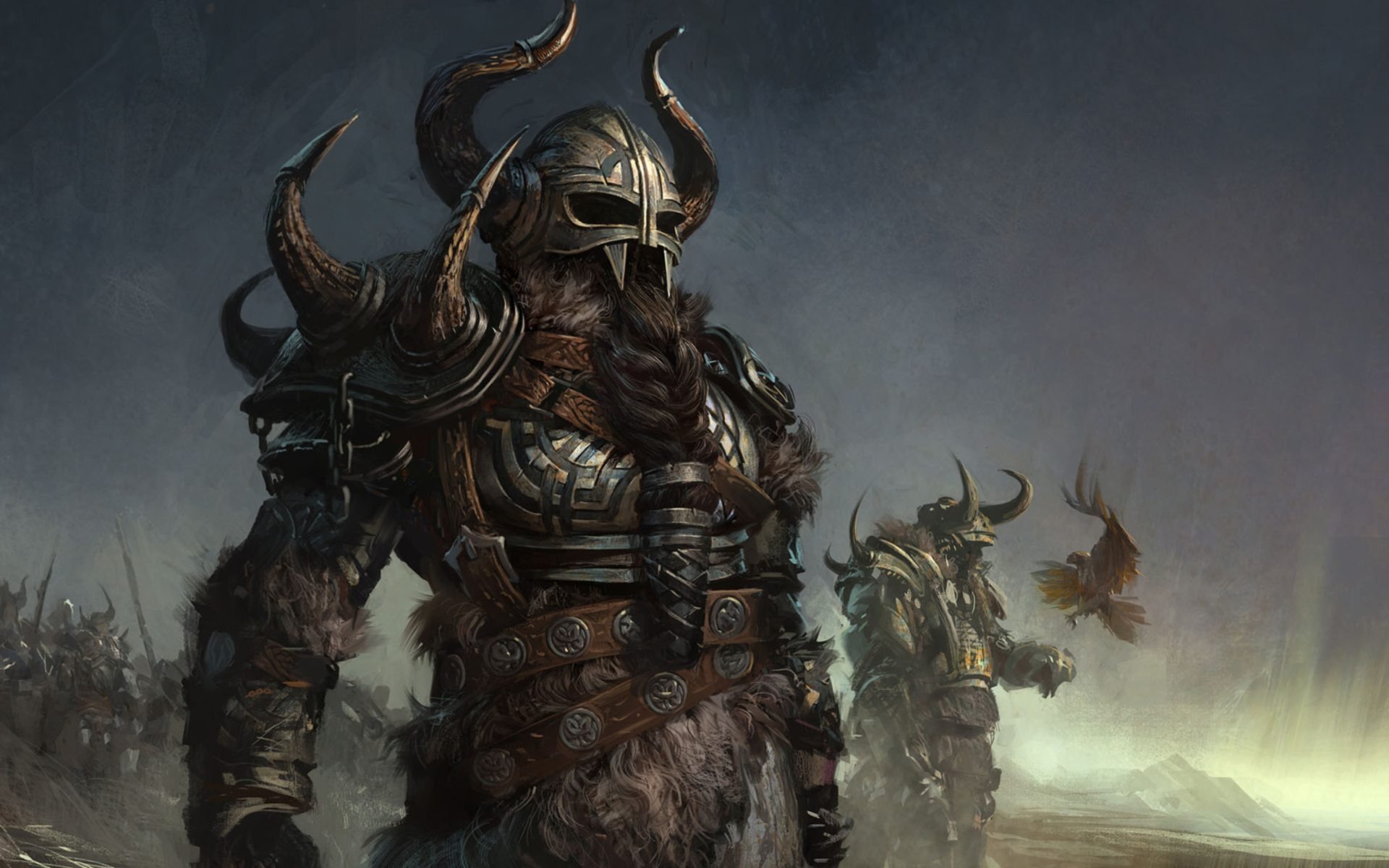 Guerrier dans un casque avec des cornes et une épéeGuerrier dans un casque avec des cornes et une épée