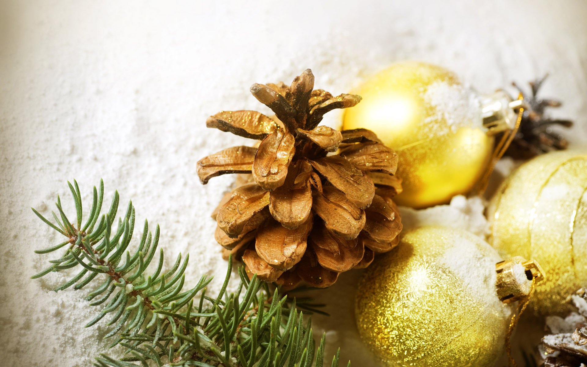 Arbre de noël, pomme de pin, neige et boules de noëlArbre de Noël, pomme de pin, neige et boules de Noël