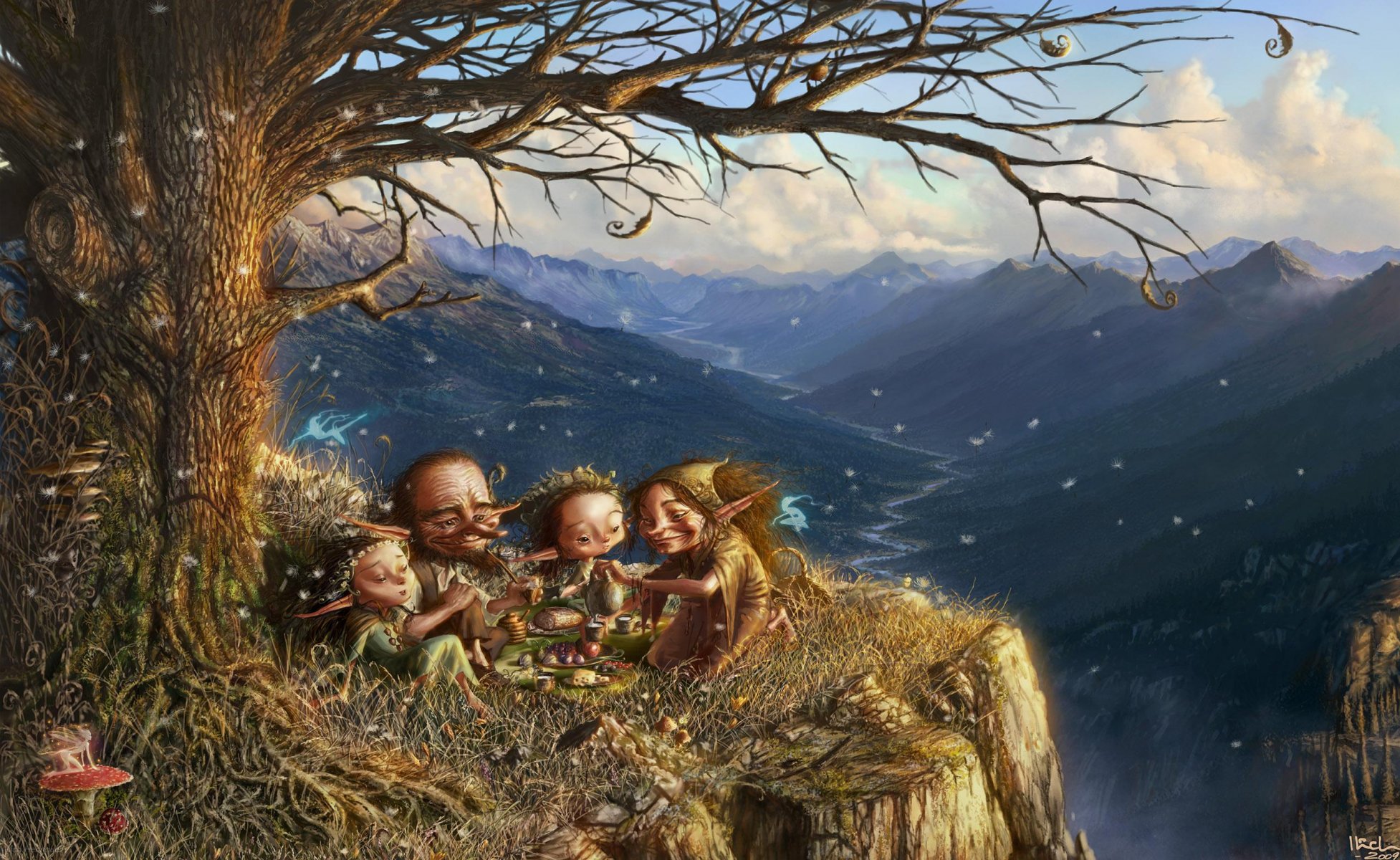 Figure elfes qui sont sortis pour un pique-nique